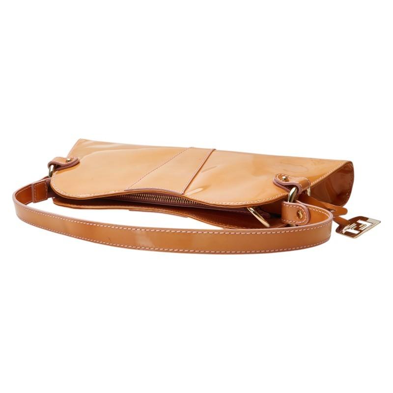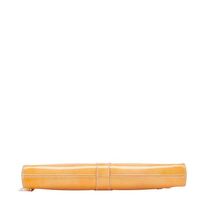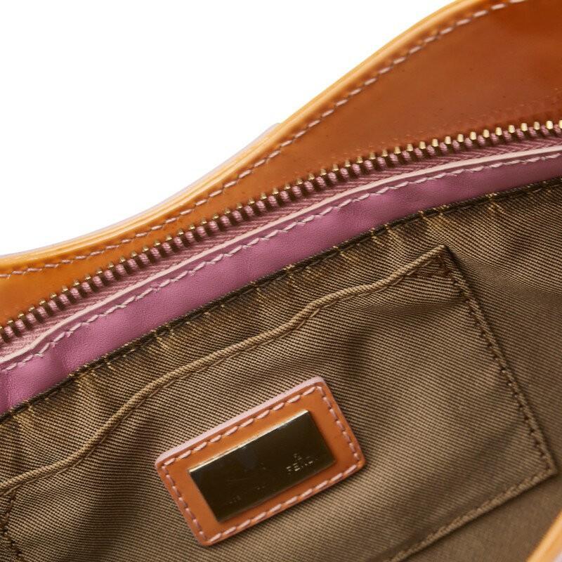 FENDI Hand Shoulder Bag Tote Purse Patent Leather Orange Authentic