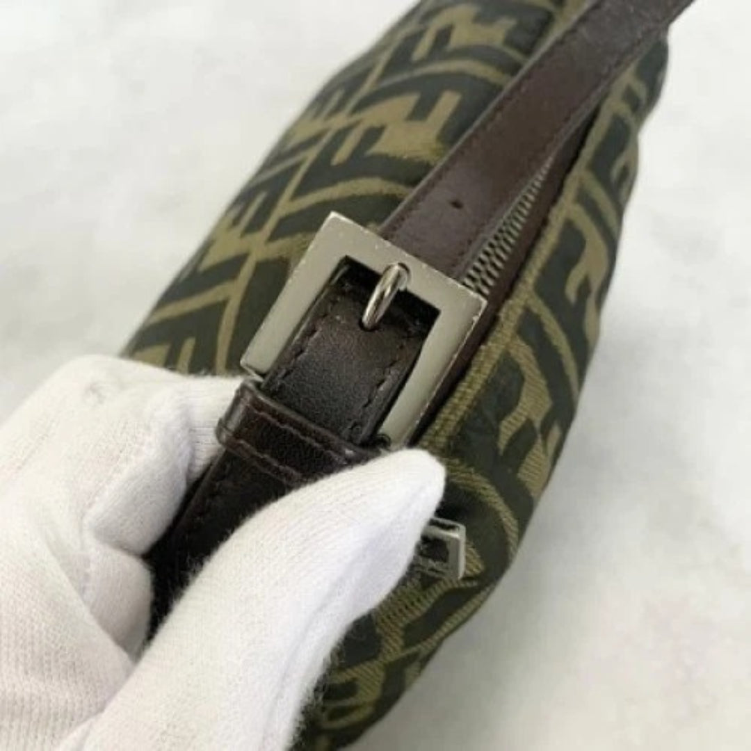 FENDI Handbag FF Zucca Pouch Vanity Canvas Beige Brown Vintage Authentic Used
