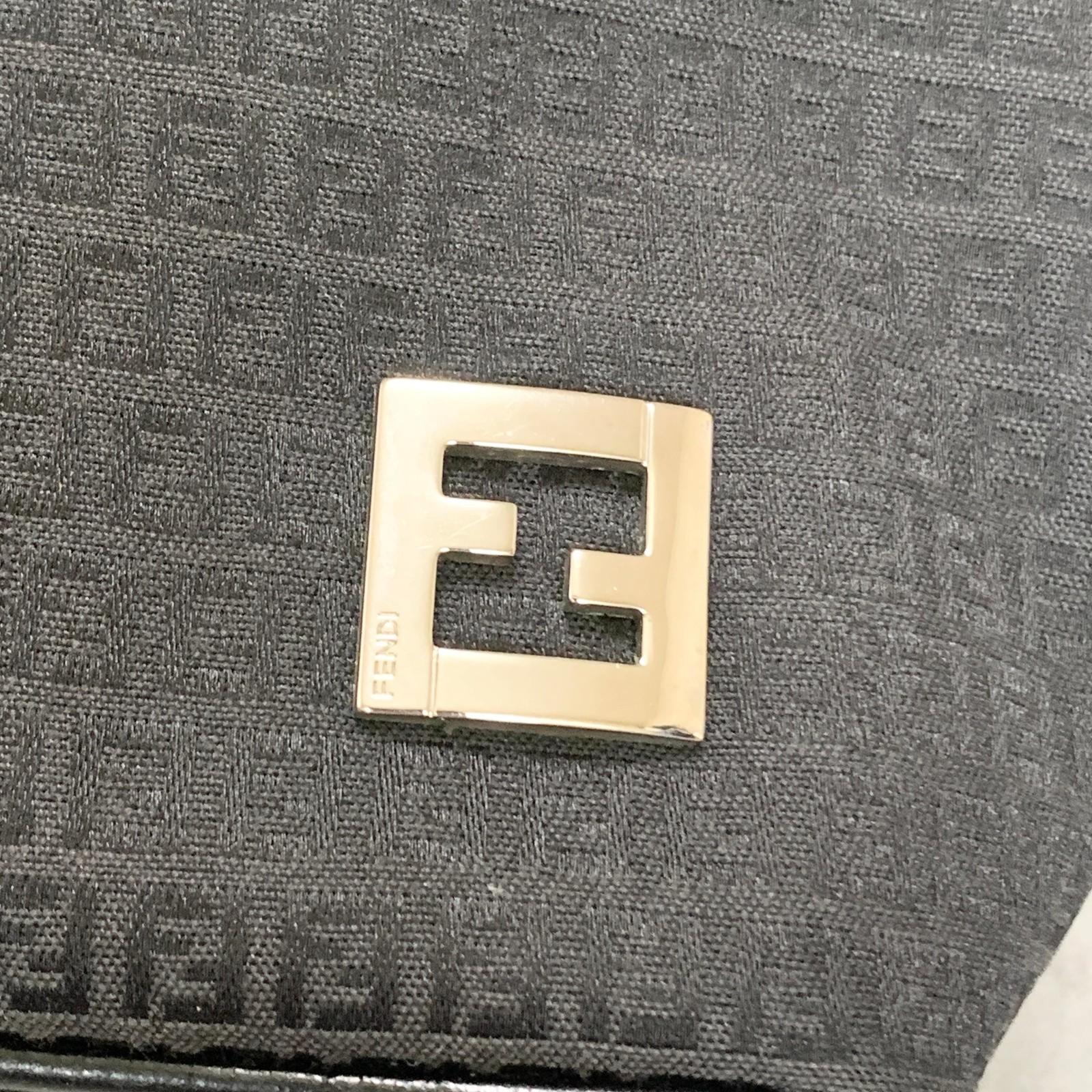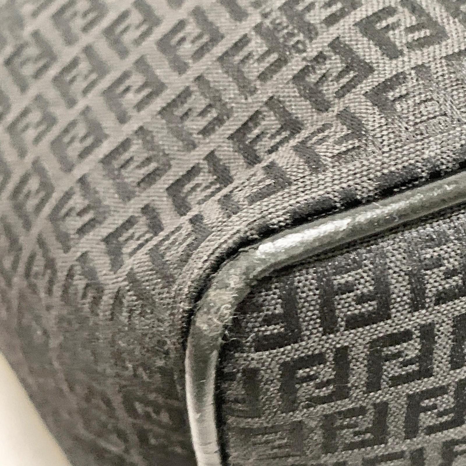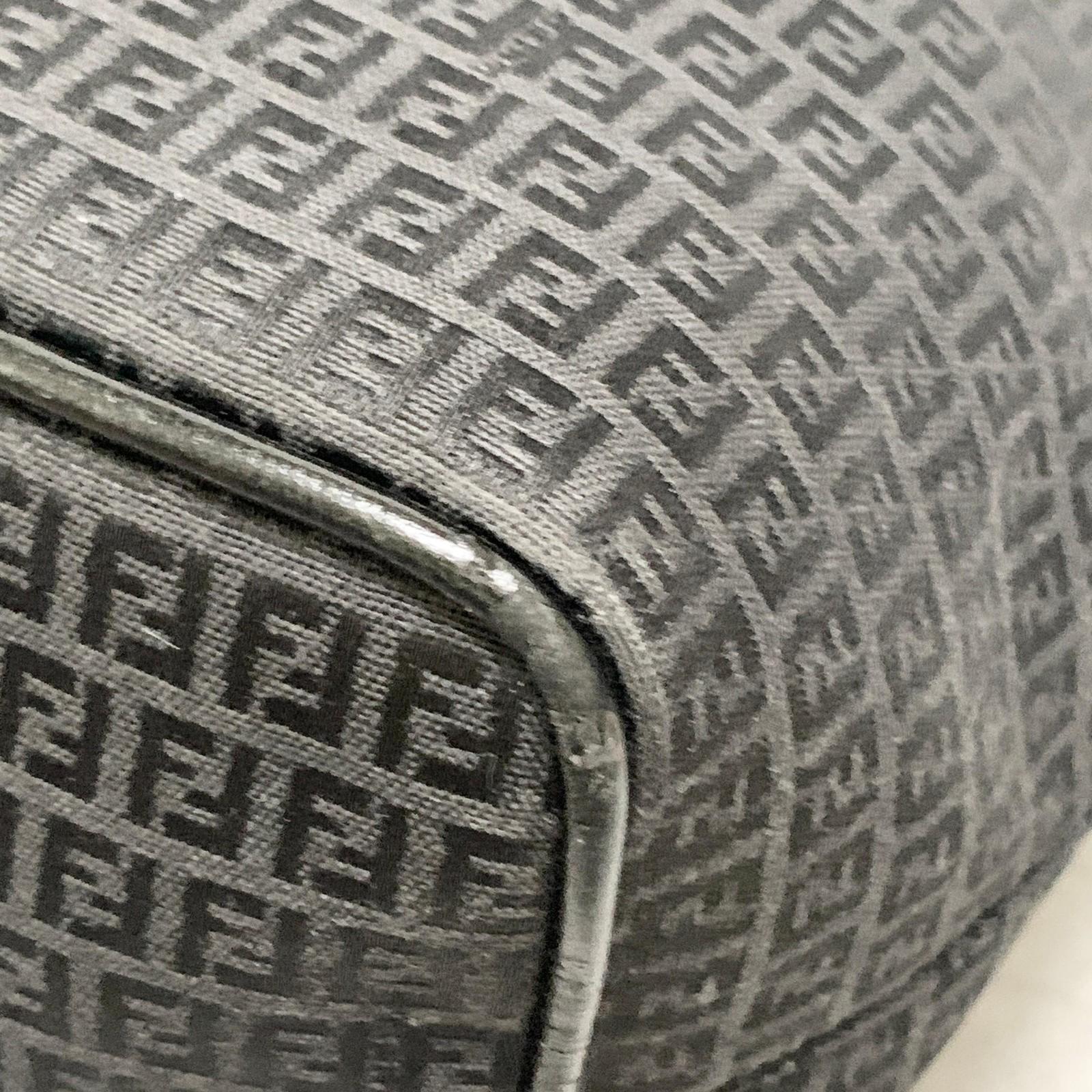 FENDI Handbag FF Zucchino Shoulder Bag Purse Canvas Leather Black Used Authentic