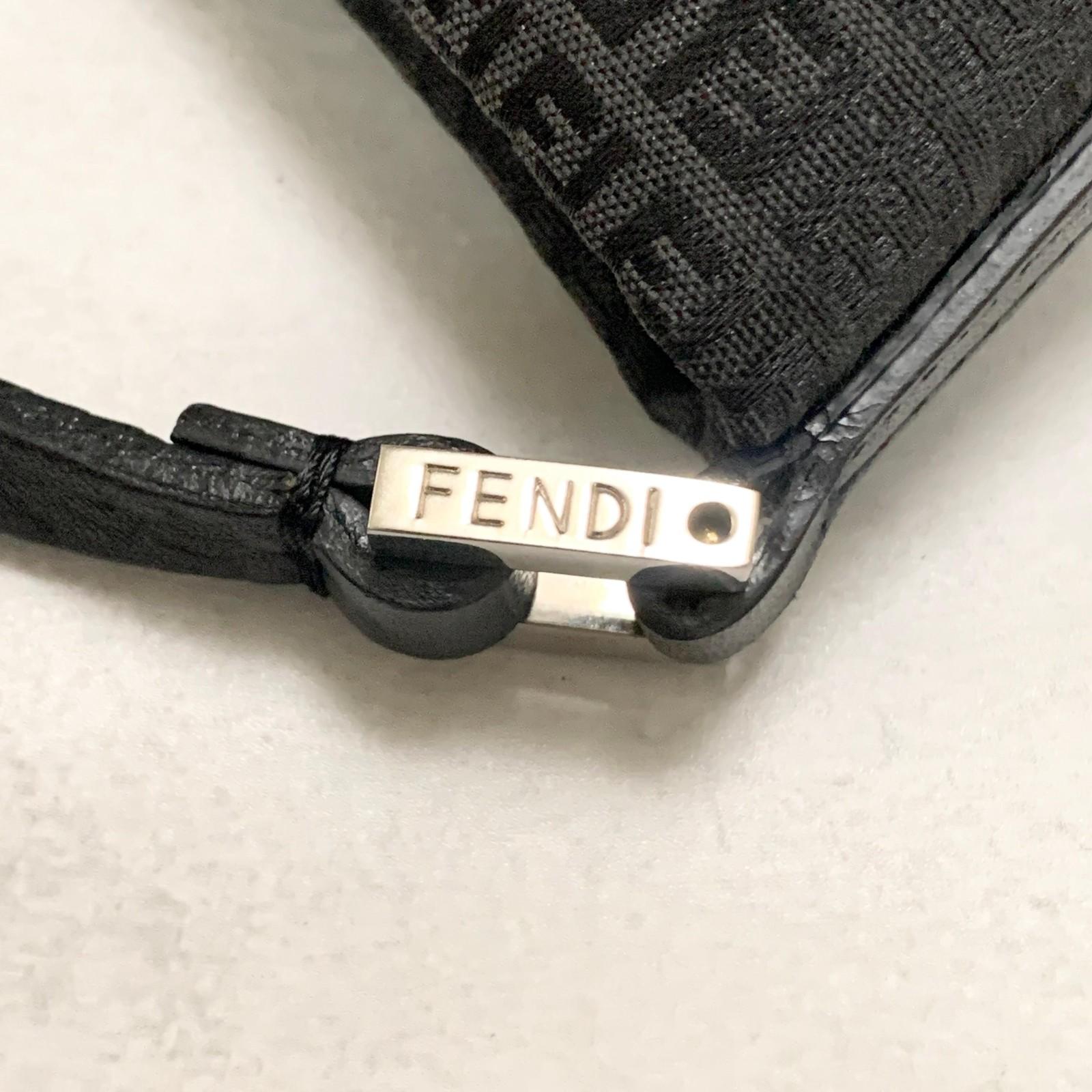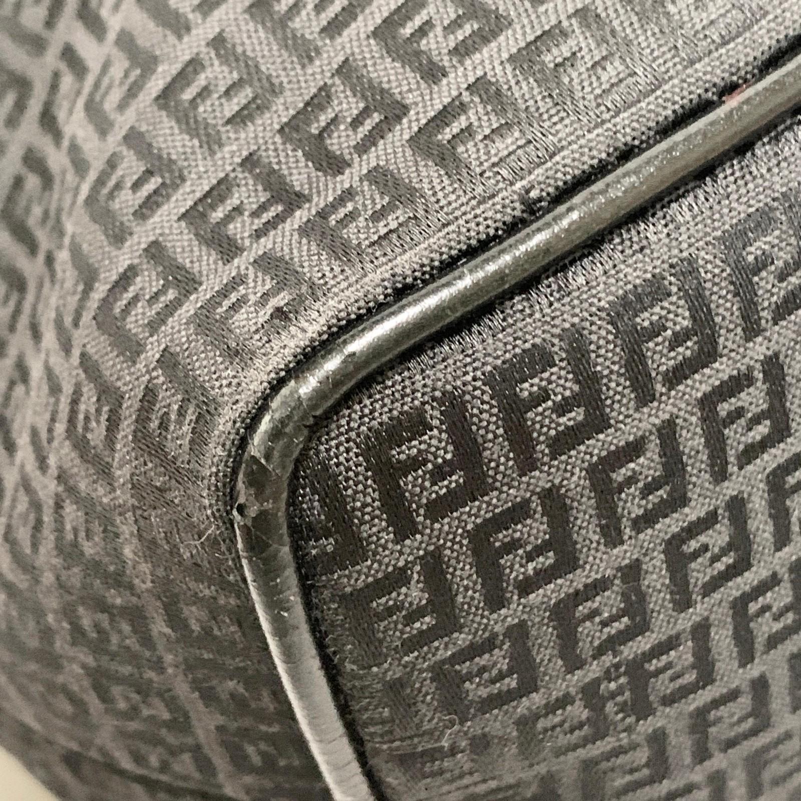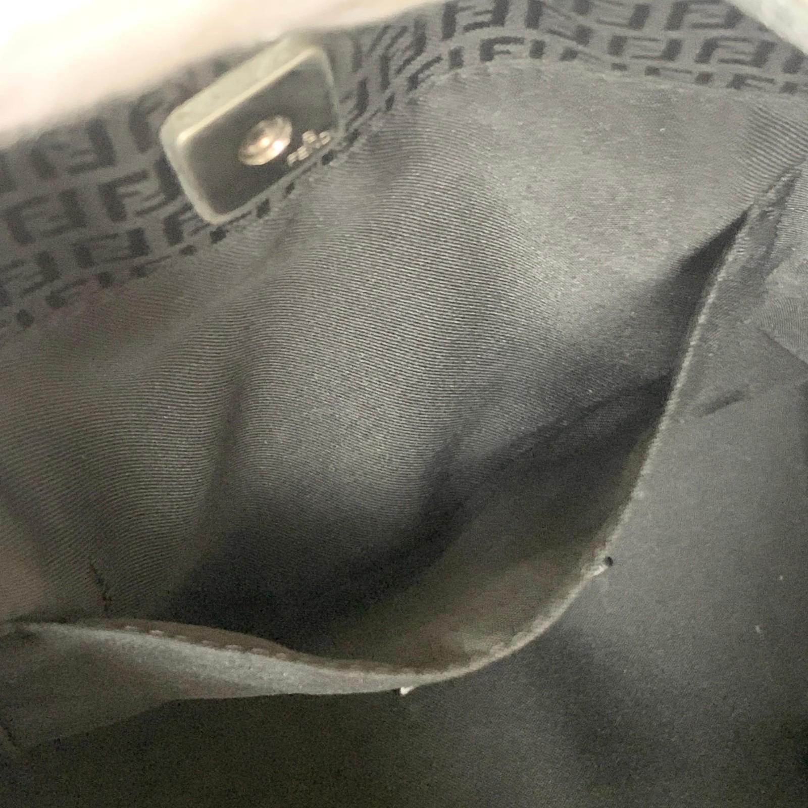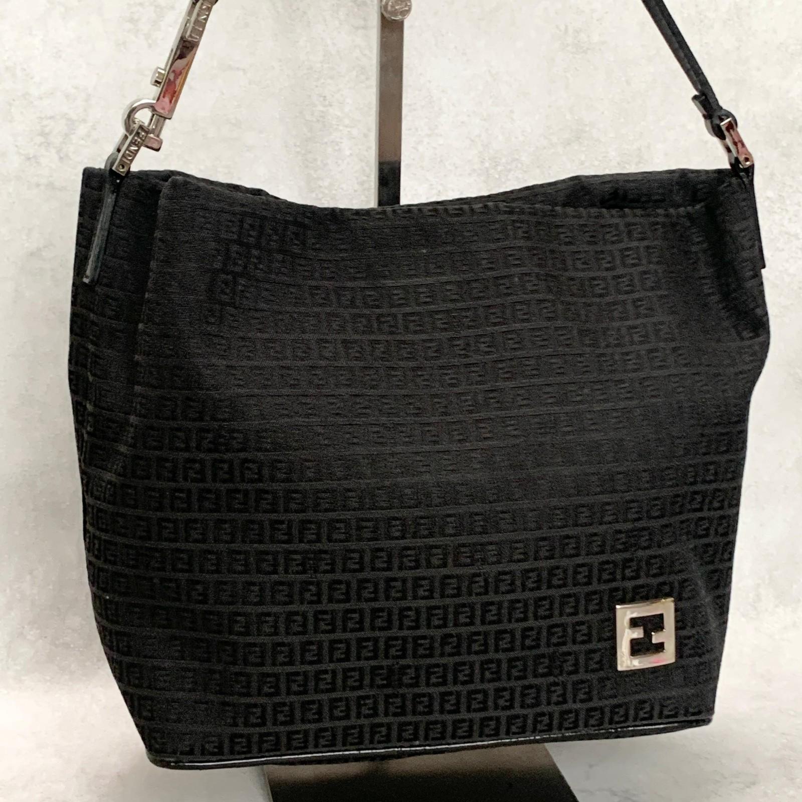 FENDI Handbag FF Zucchino Shoulder Bag Purse Canvas Leather Black Used Authentic