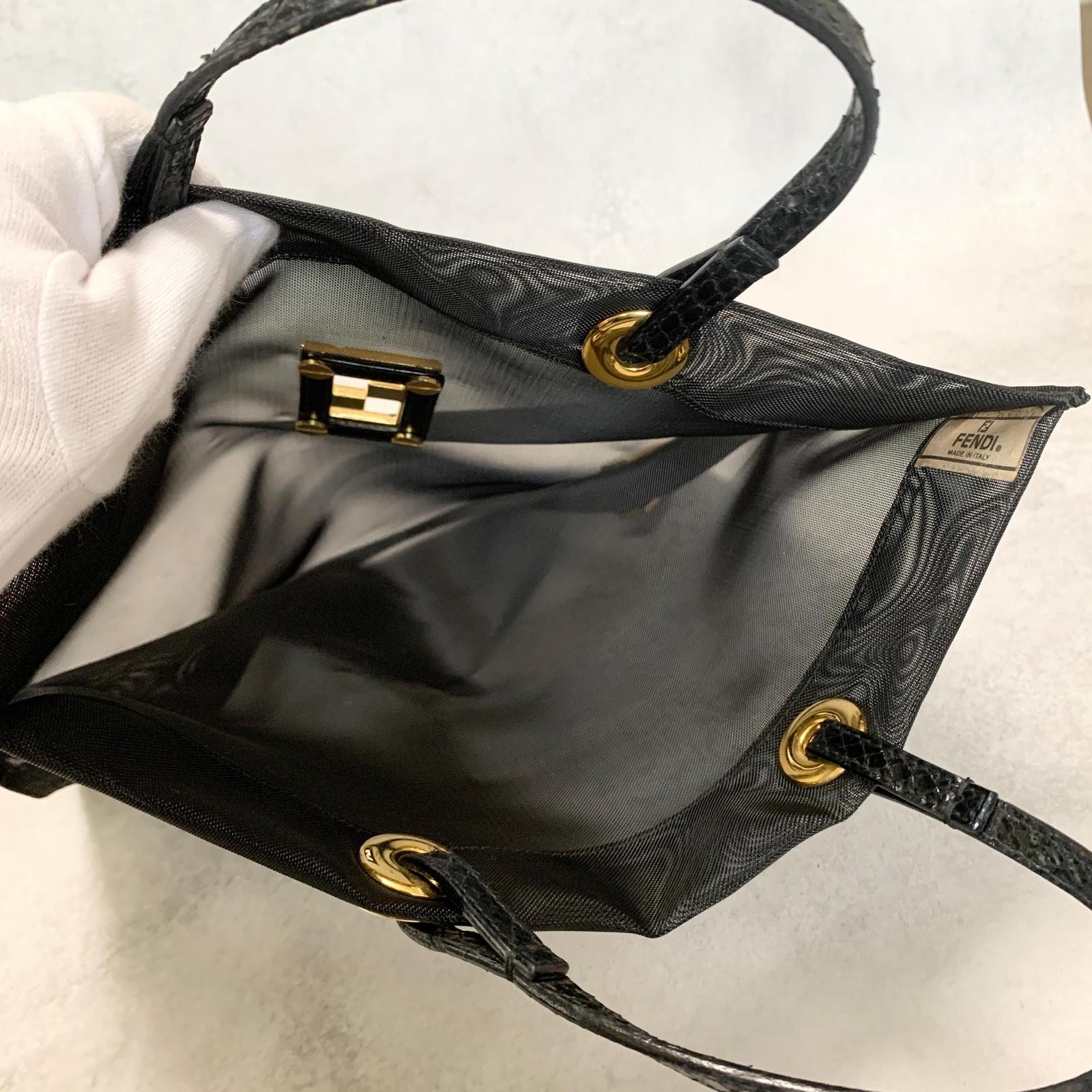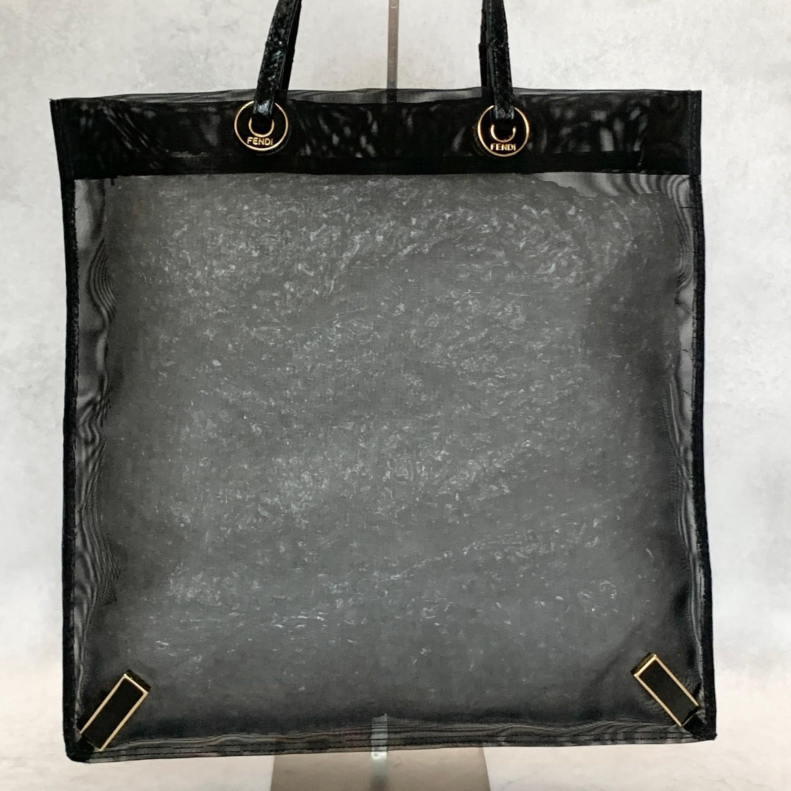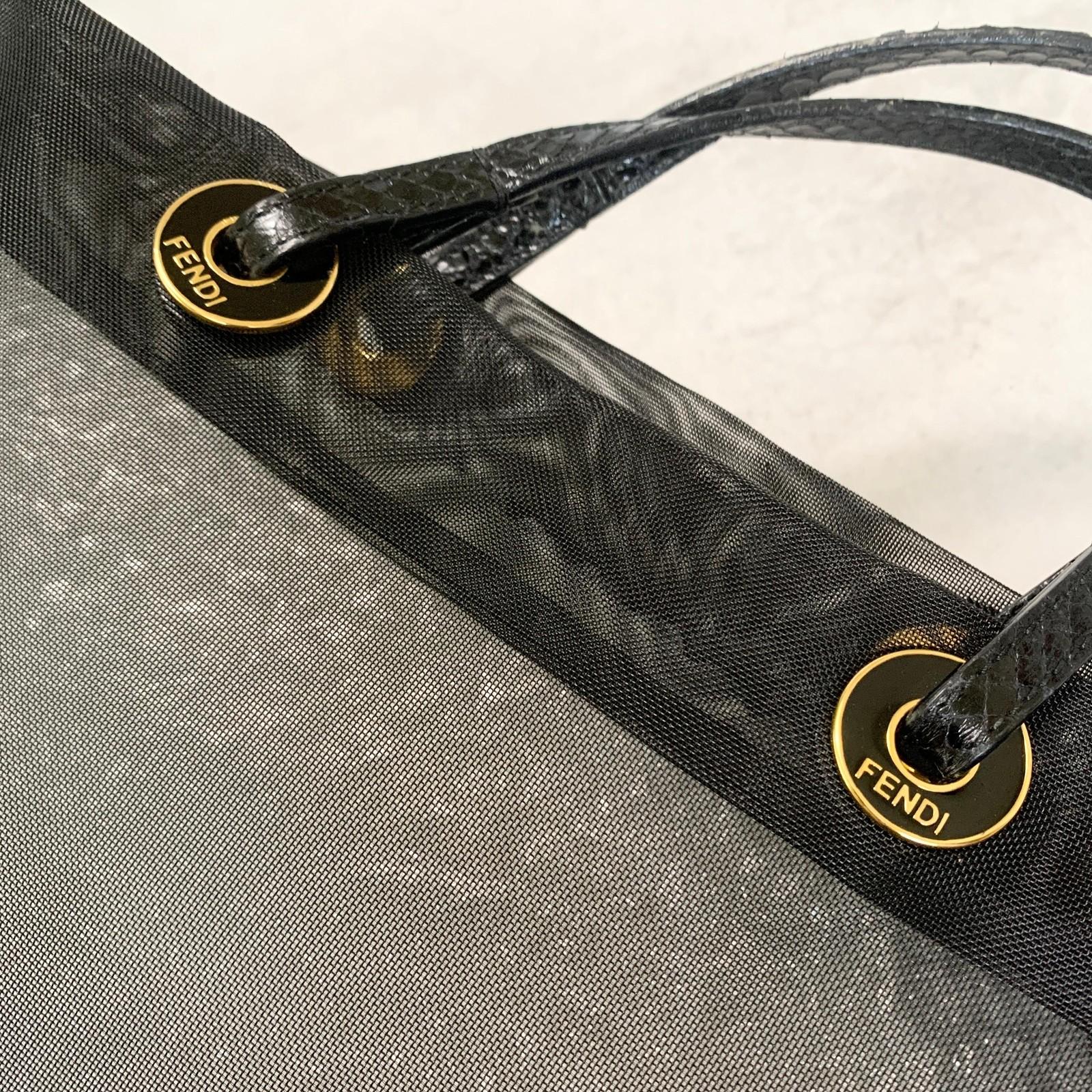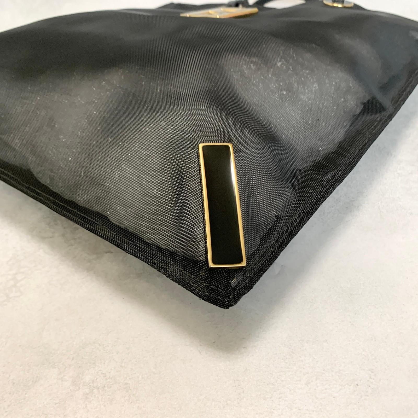 FENDI Handbag Tote Bag Purse Mesh Leather Black Gold Used Women's Authentic