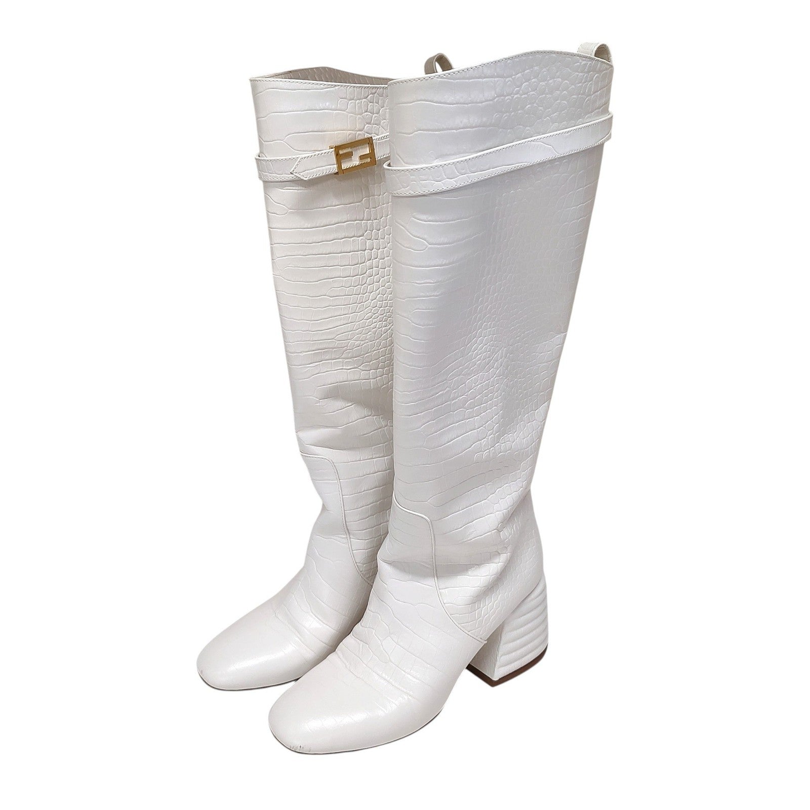 FENDI Long Boots Shoes EU 37 US 7 Leather White Authentic