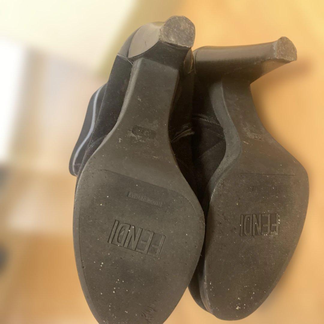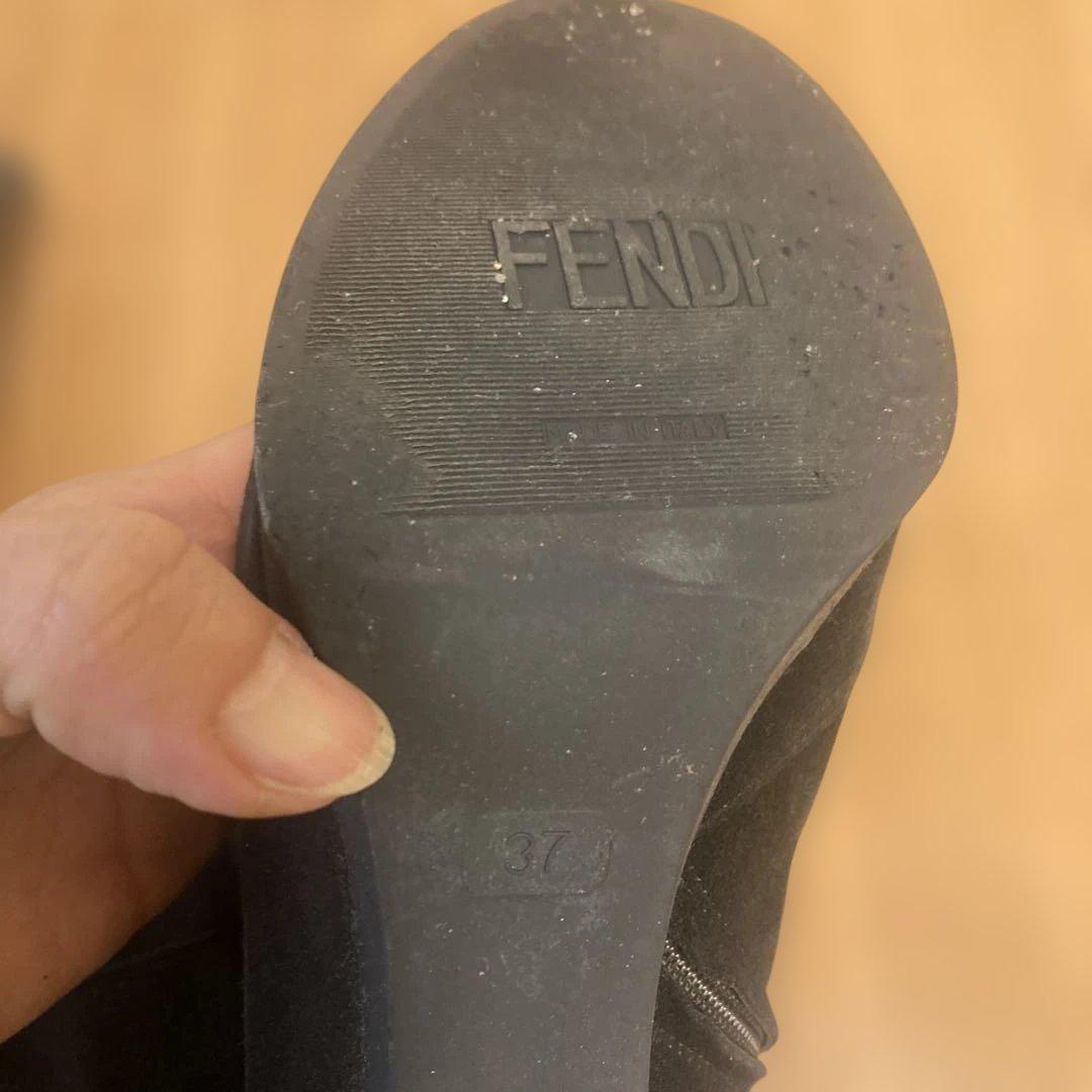 FENDI Long Boots Shoes EU 37 US 7 Suede Black Authentic
