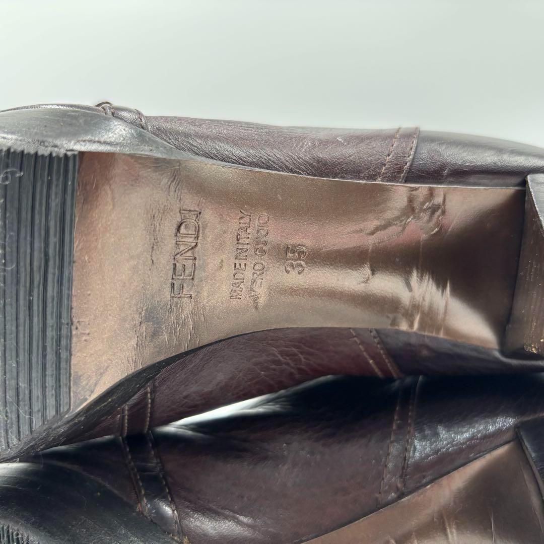 FENDI Long Boots Shoes FF Zucca EU 35 US 5 Brown Authentic