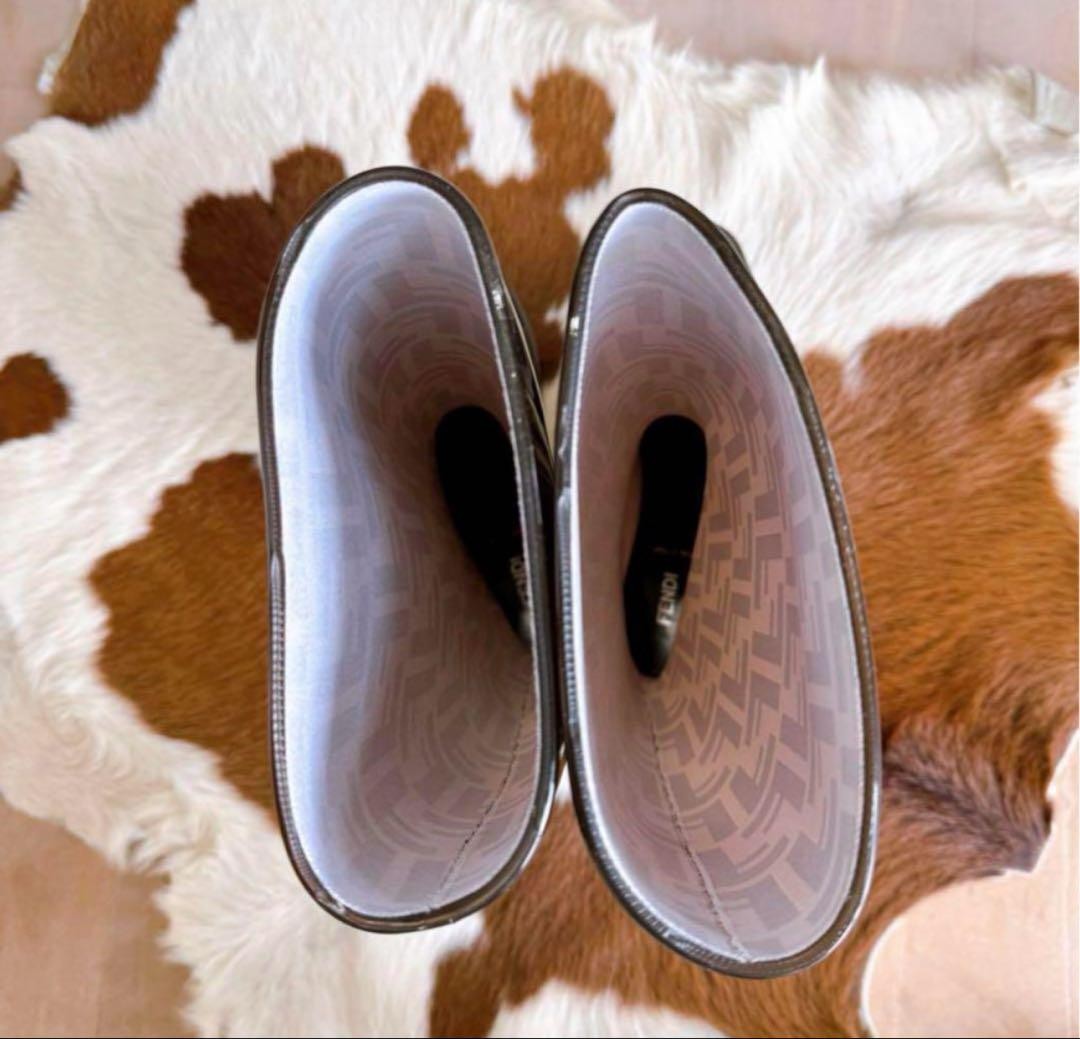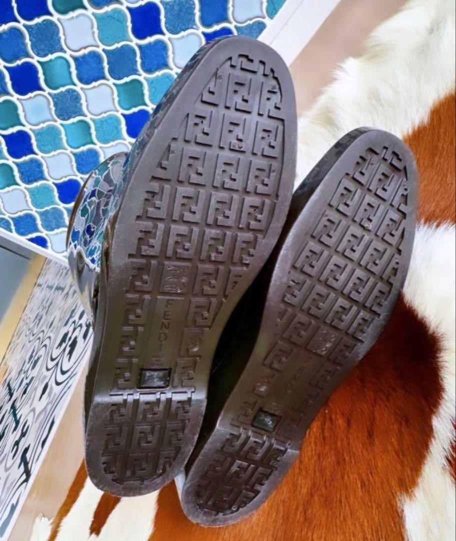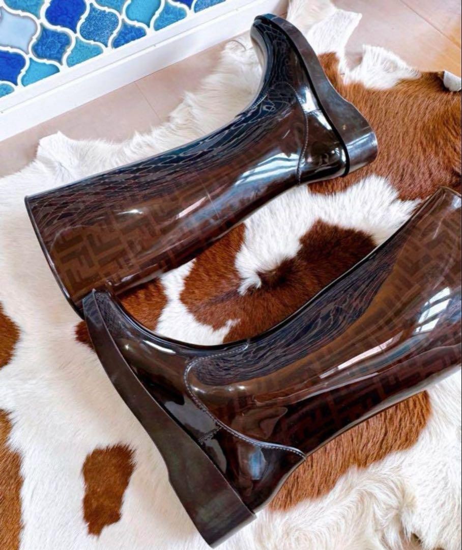 FENDI Long Rain Boots Shoes FF Zucca EU 39 US 9 Brown Authentic
