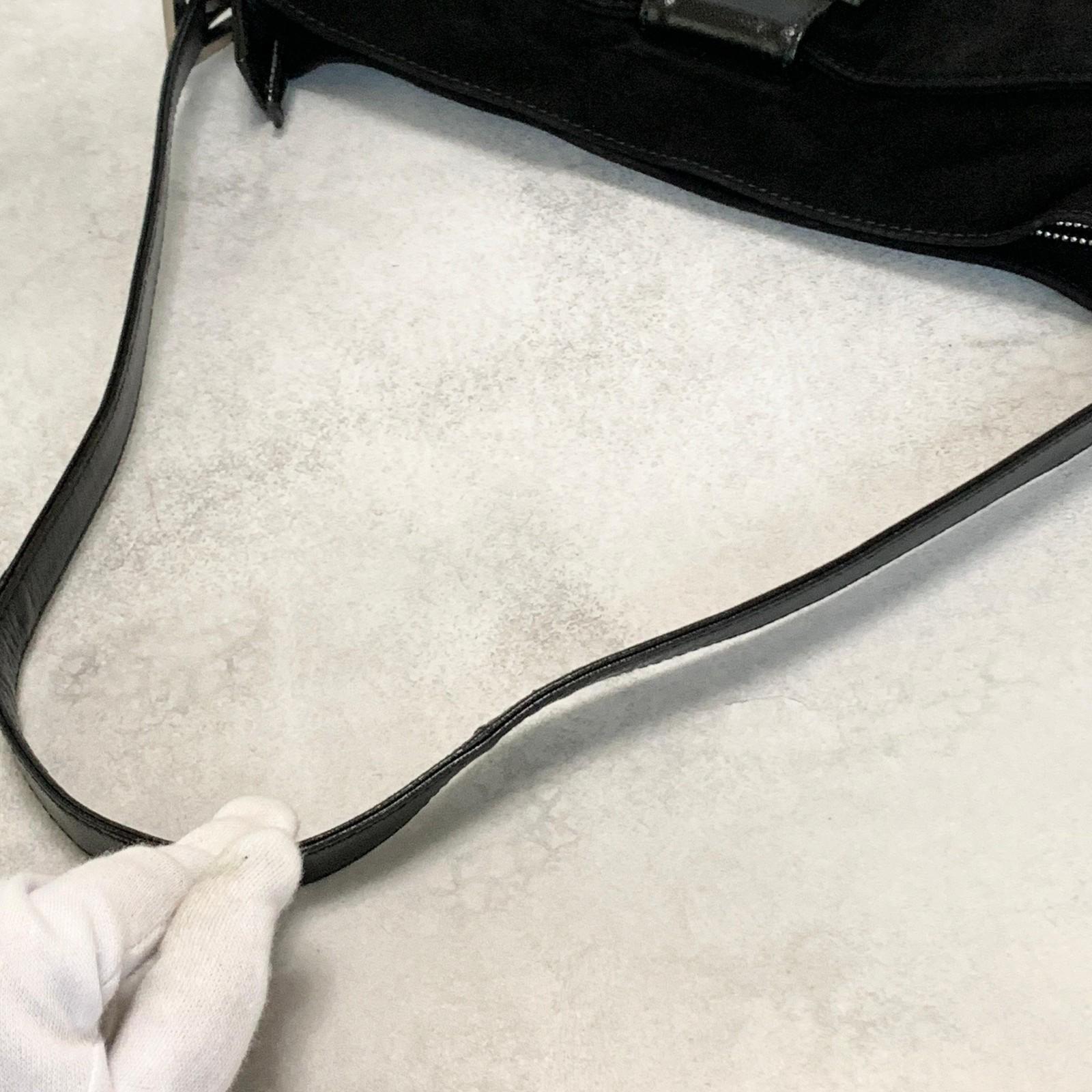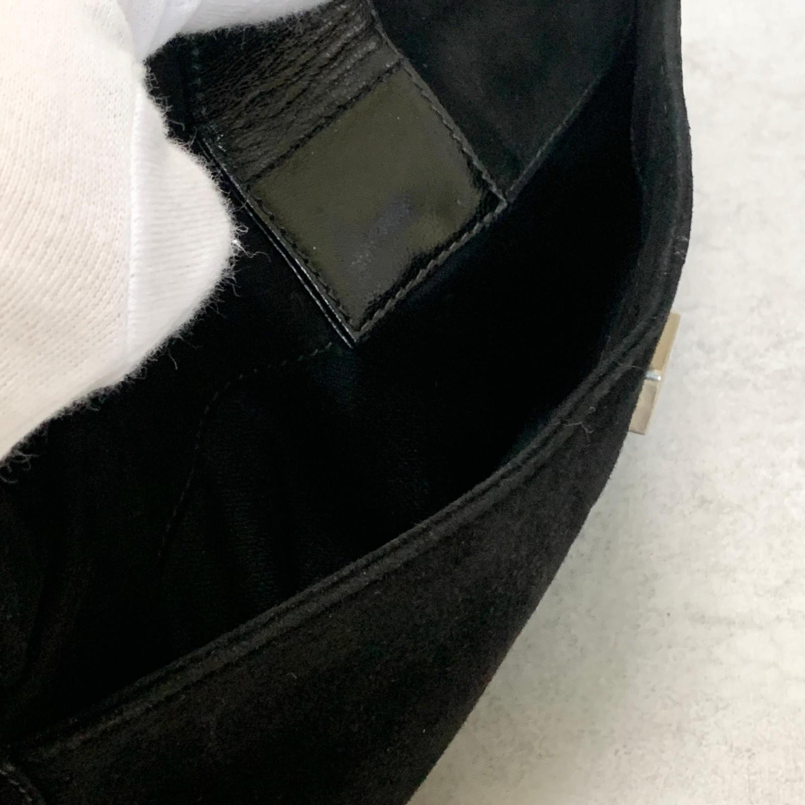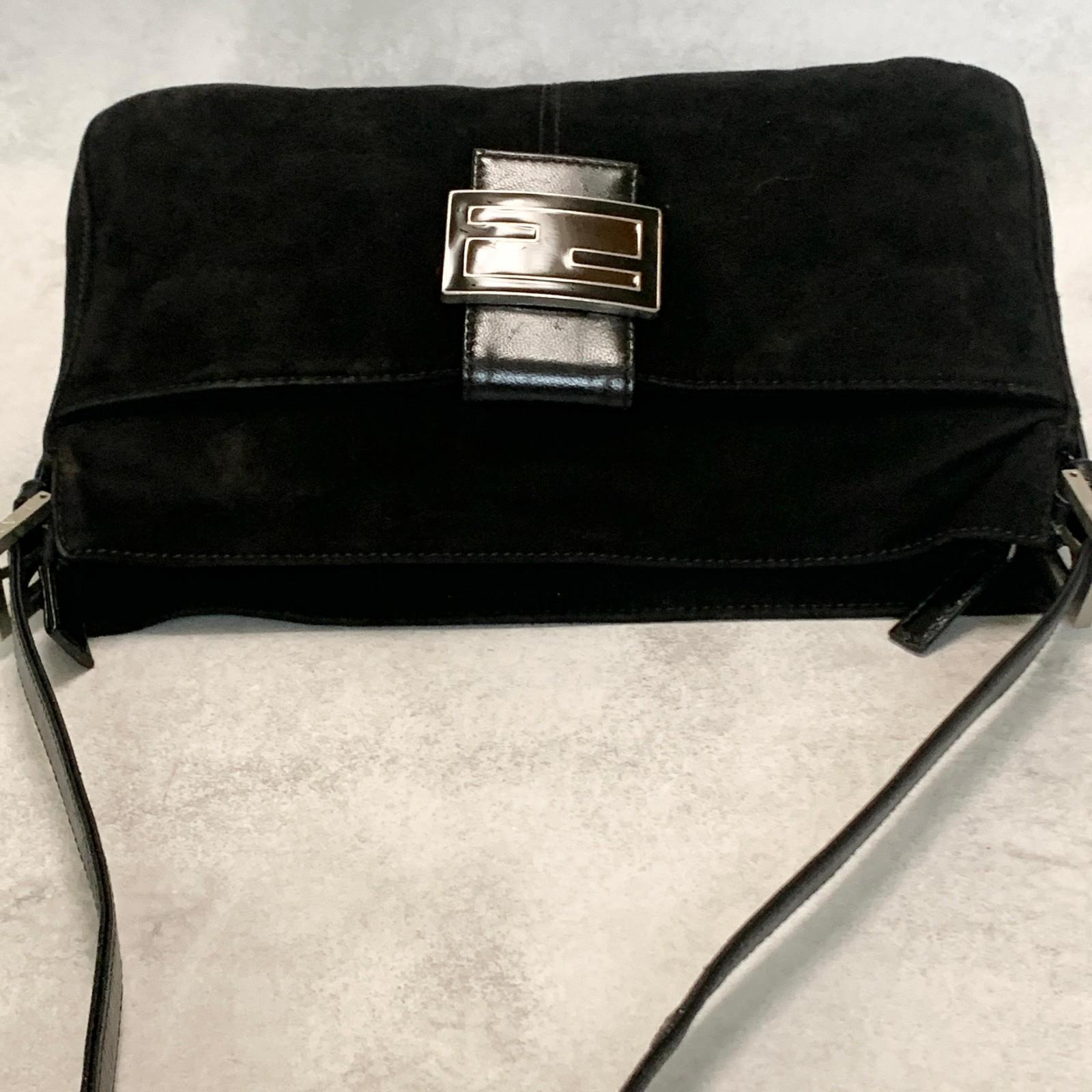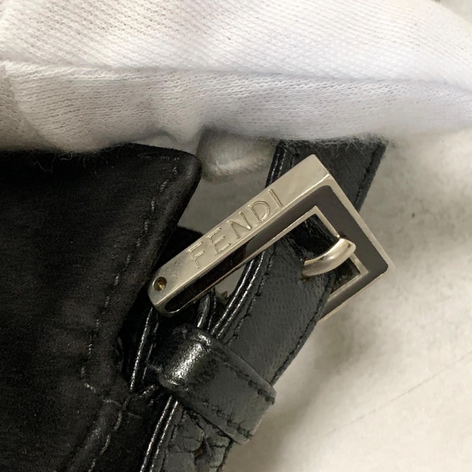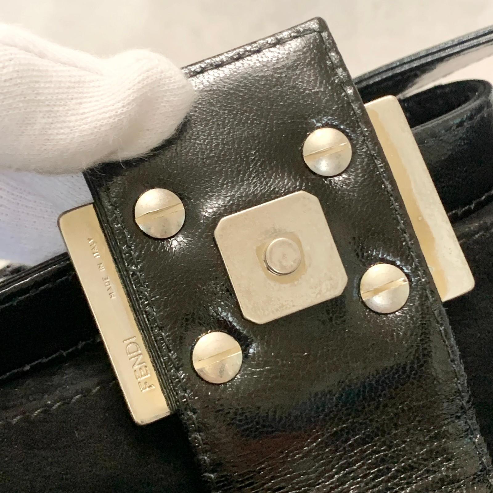 FENDI MammaBaguette Shoulder Bag FF Purse Suede Leather Black Silver Used Auth