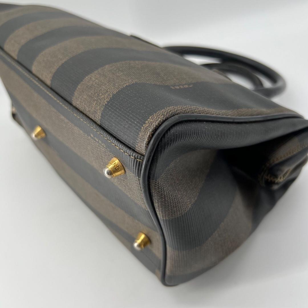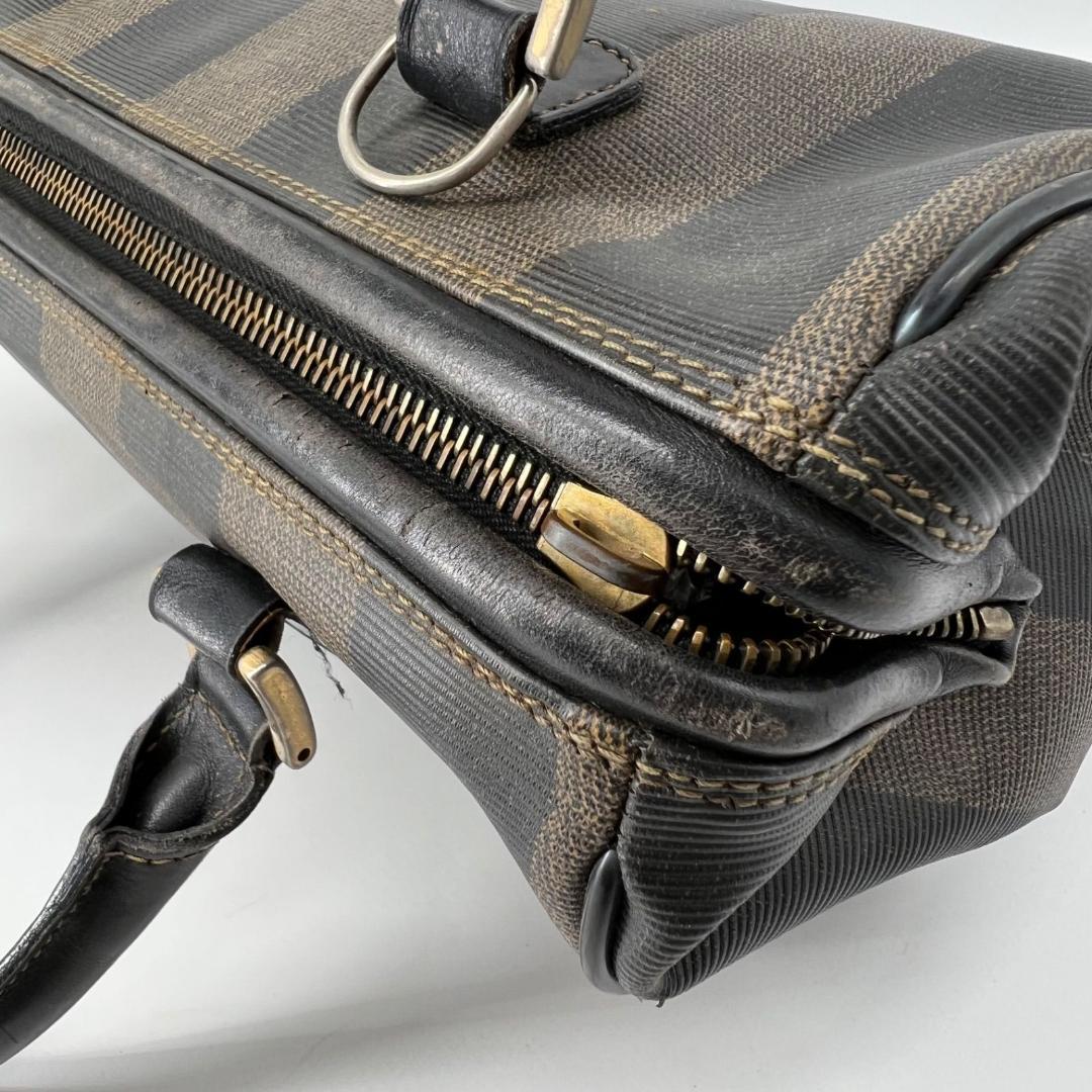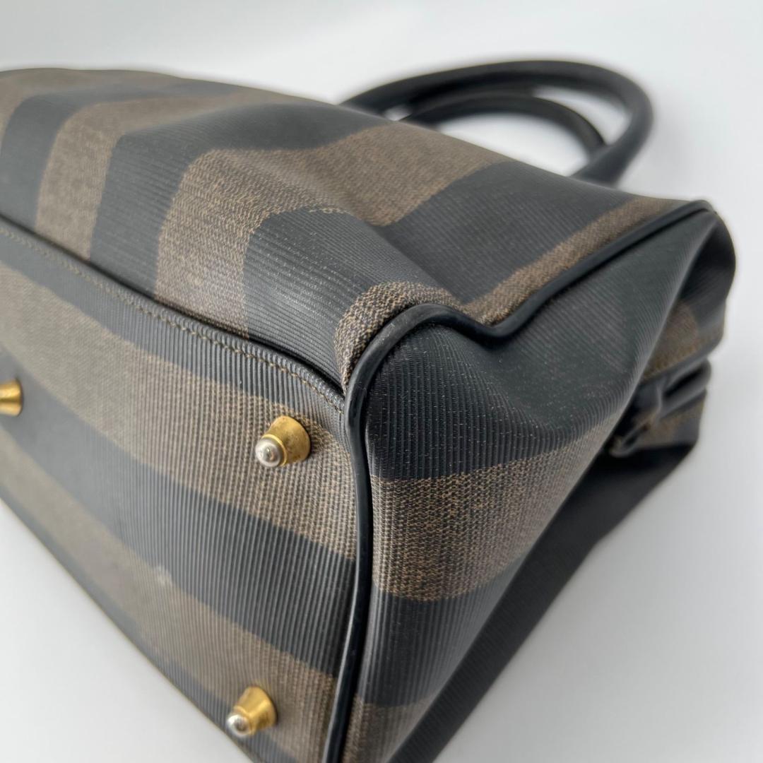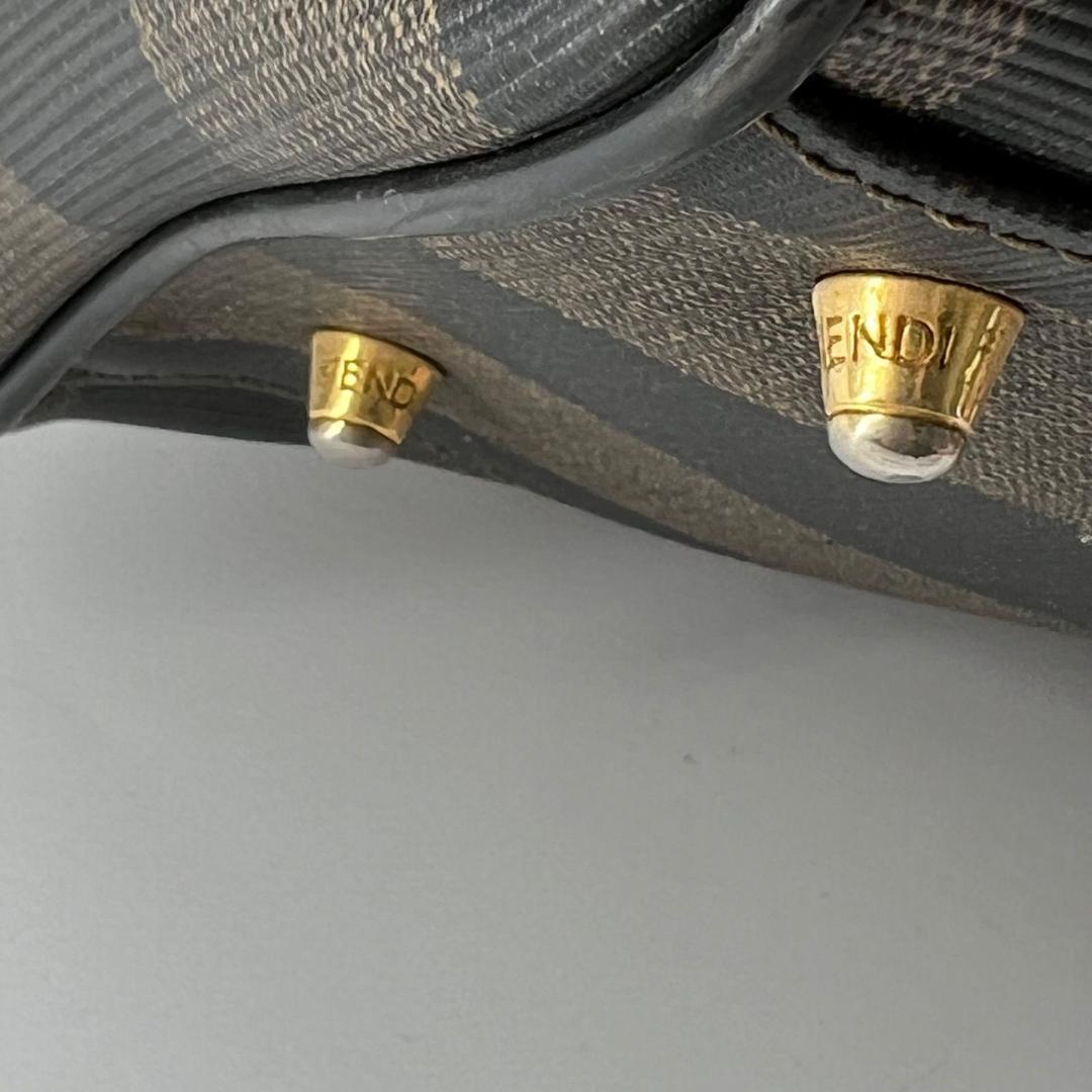 FENDI Mini Boston Bag Hand Bag Tote Purse FF Pecan Authentic
