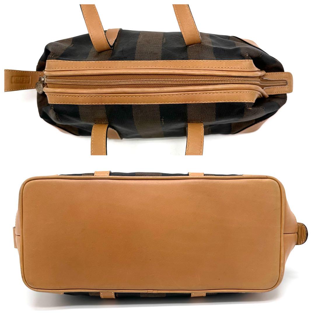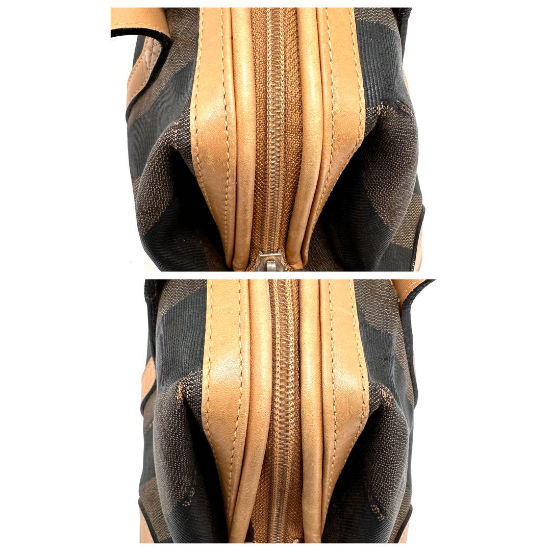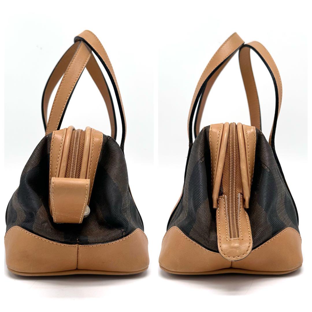 FENDI Mini Boston Hand Bag Tote Purse Pecan PVC Leather Brown Authentic