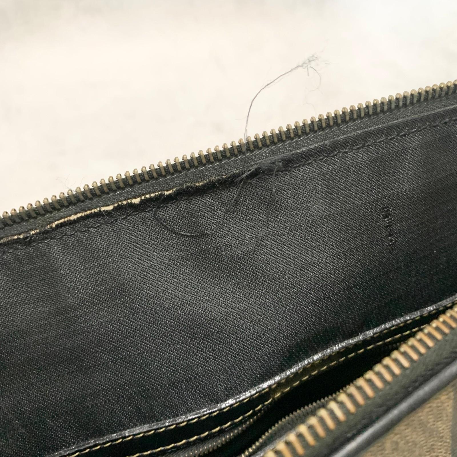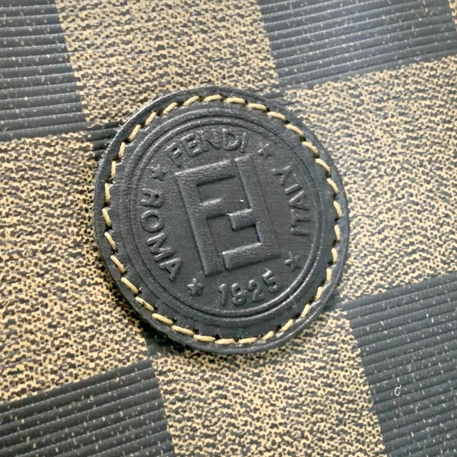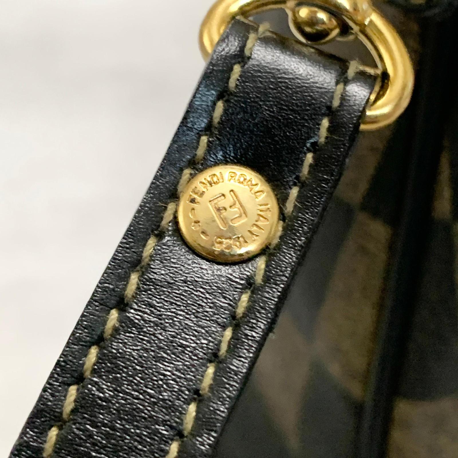 FENDI Pecan Handbag Shoulder Bag FF Tote Purse PVC Leather Black Used Authentic
