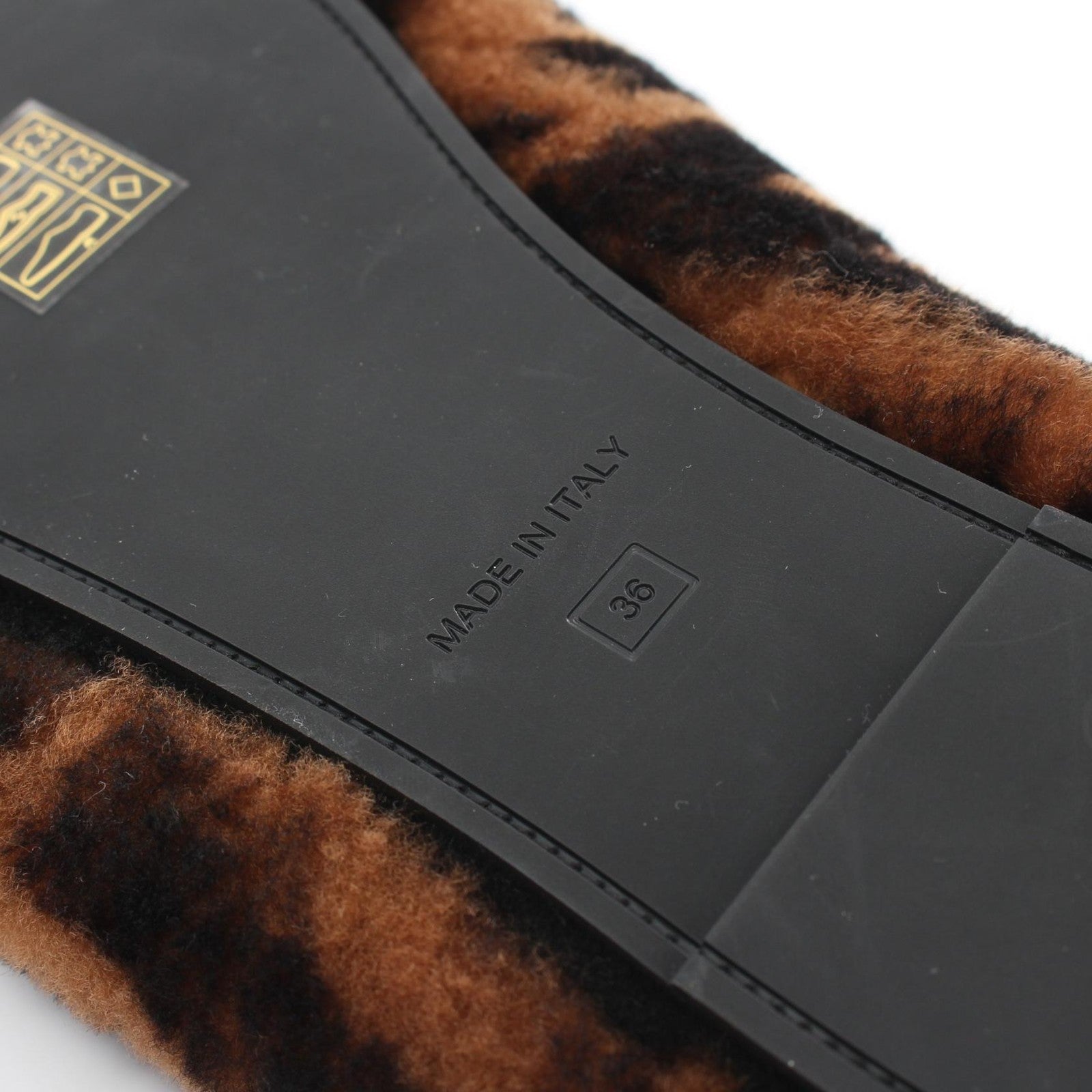 FENDI Room Shoes FF Zucca EU 36 US 6 Leather Boa Brown Black Authentic