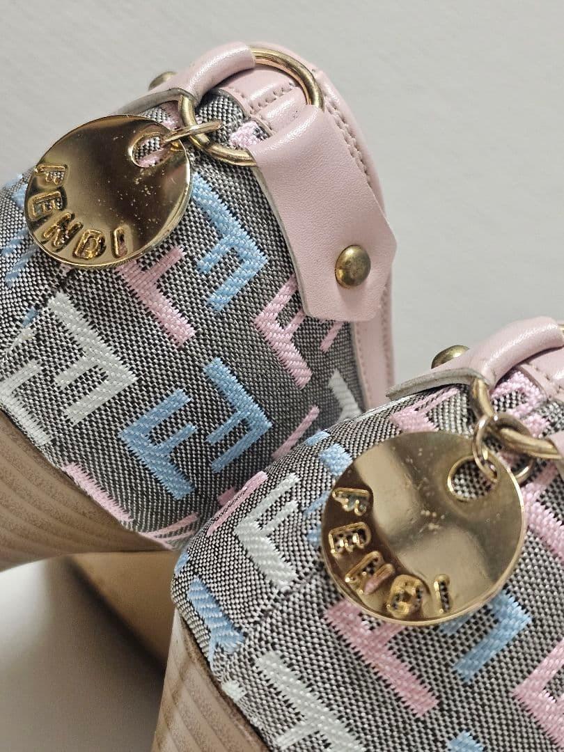 FENDI Shoes Pumps Heel FF Zucca EU 36.5 US 6.5 Canvas Leather Multicolor Auth