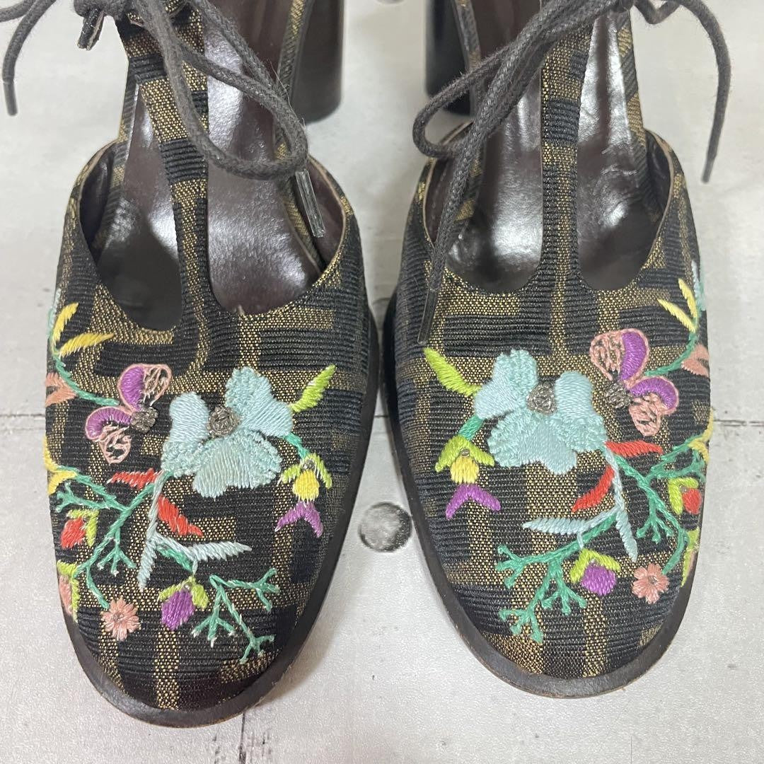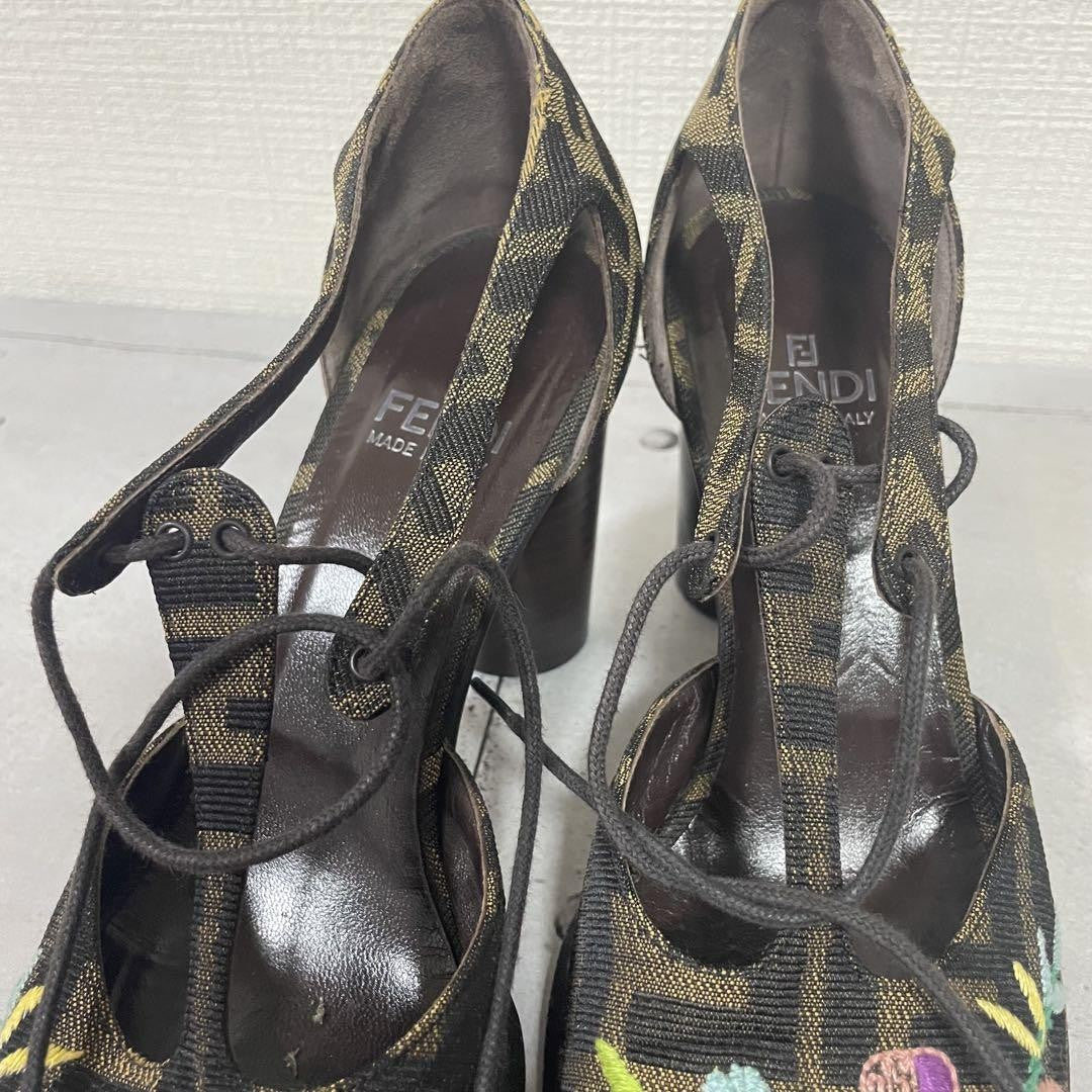 FENDI Shoes Pumps Heel FF Zucca EU 36.5 US 6.5 Multicolor Authentic