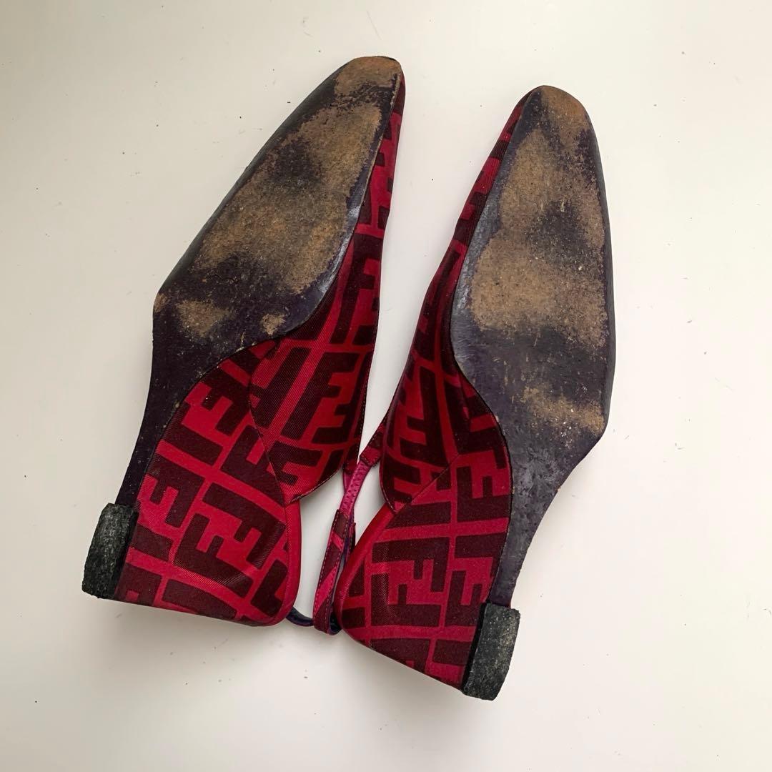 FENDI Shoes Pumps Heel FF Zucca EU 36 US 6 Cotton Canvas Red Pink Authentic