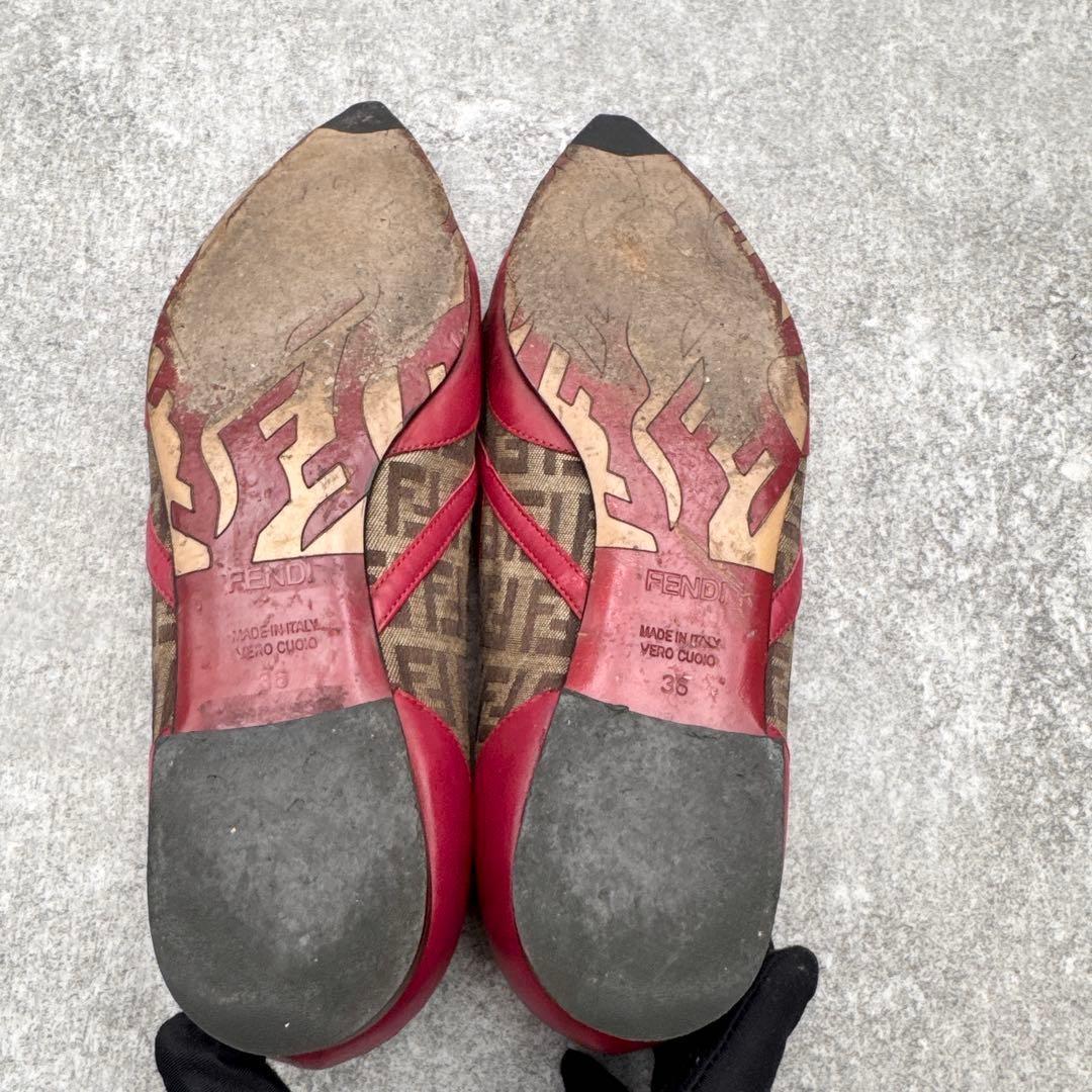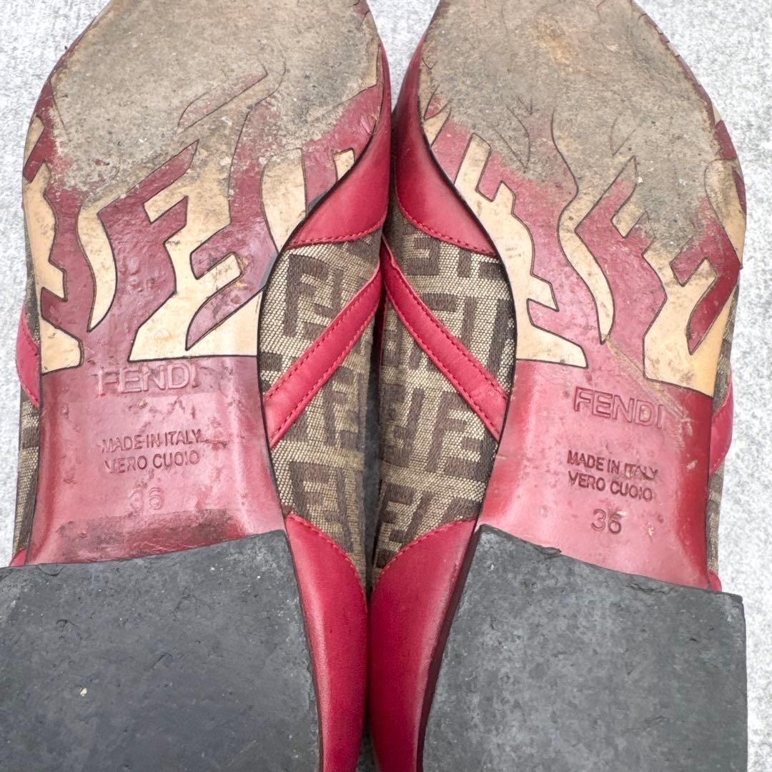 FENDI Shoes Pumps Heel FF Zucca EU 36 US 6 Leather Red Authentic