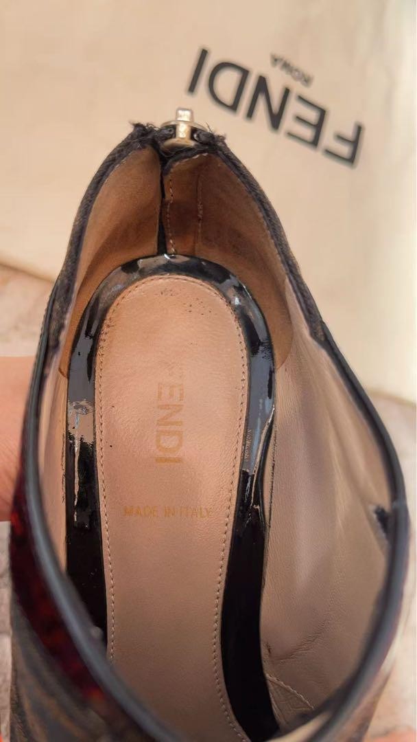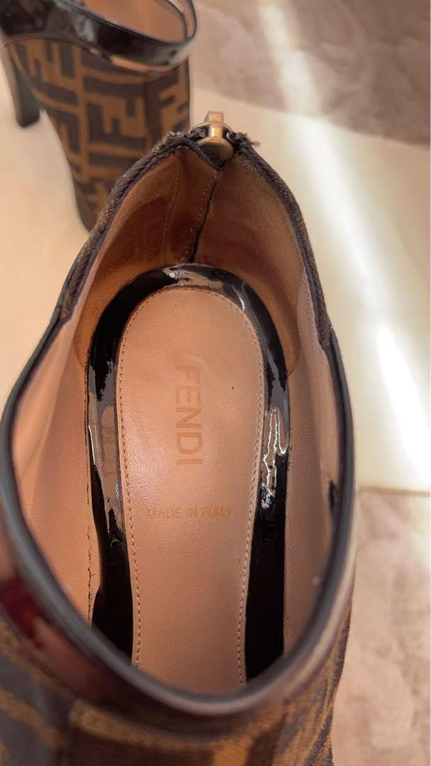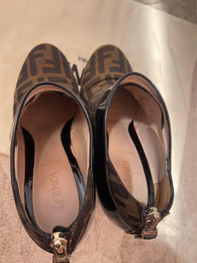 FENDI Short Boots Bootie Shoes FF Zucca EU 37 US 7 Brown Black Authentic