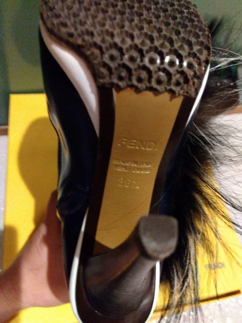 FENDI Short Boots Shoes EU 36.5 US 6.5 Leather Brown Navy Authentic
