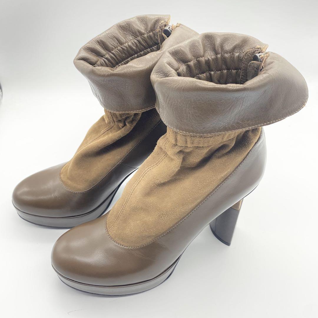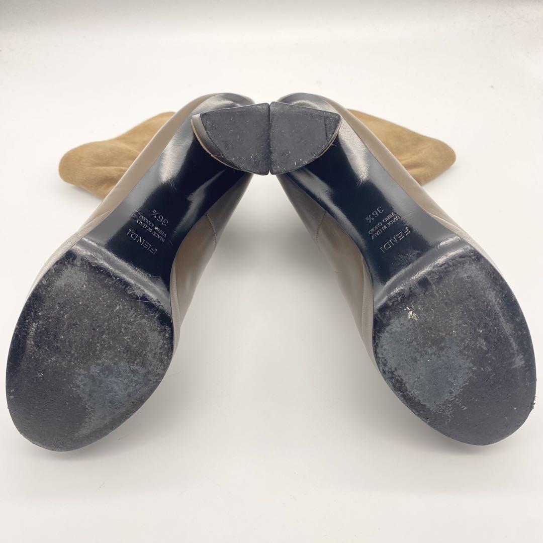 FENDI Short Boots Shoes EU 36.5 US 6.5 Suede Leather Brown Authentic