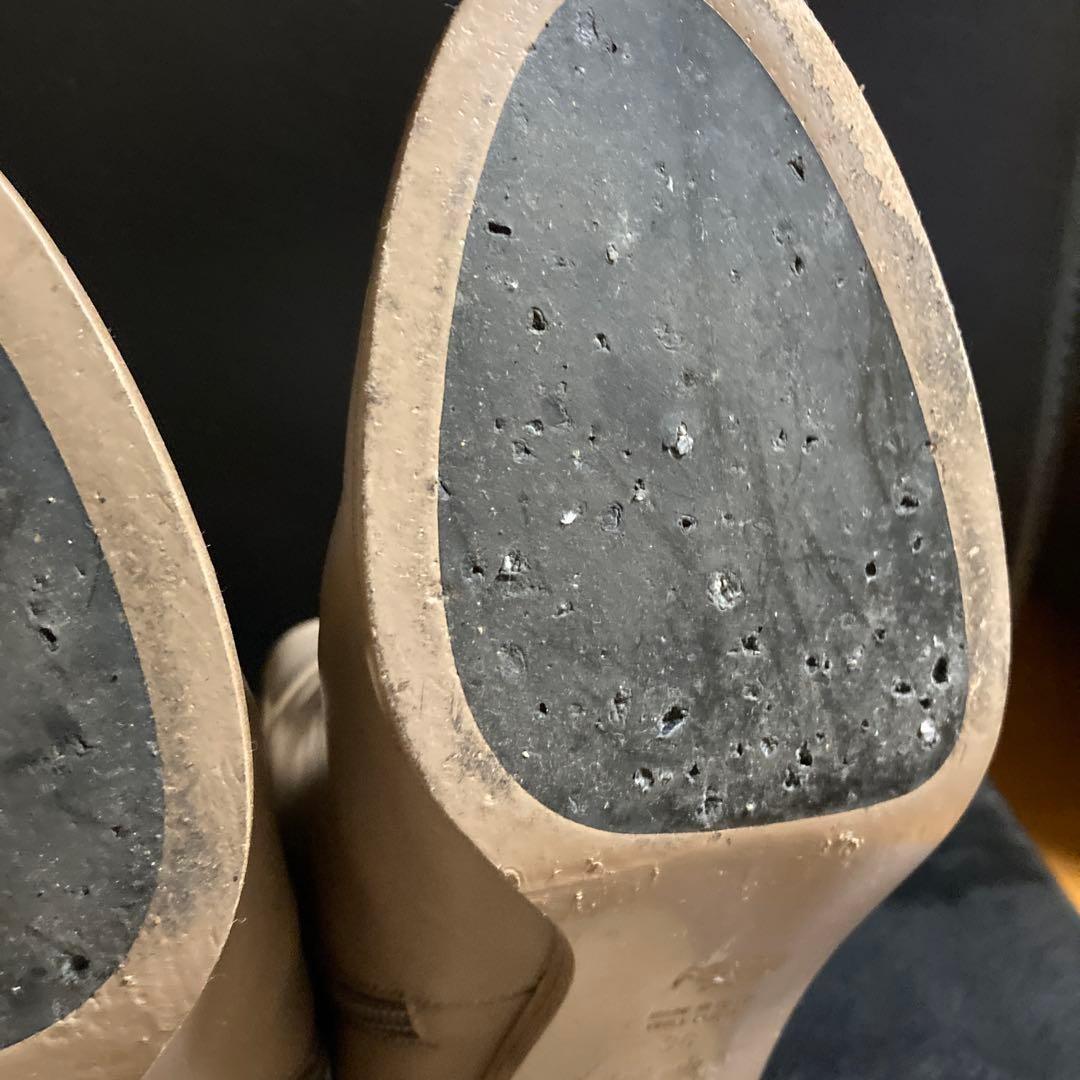 I wore them about four times after purchasing them and then stored them away. As you can see in the photos, there are some pebbles embedded in the soles, causing some damage, but they will be slippery if you don't have the soles reinforced (I haven't had the soles reinforced since purchasing them), so I would recommend having that done.