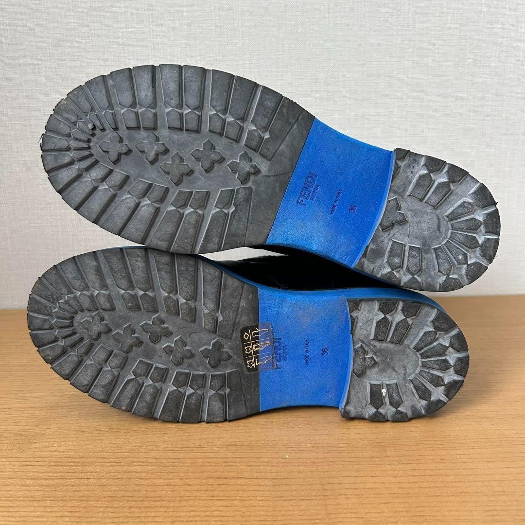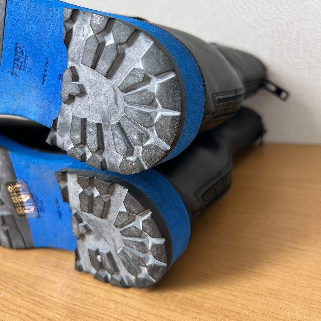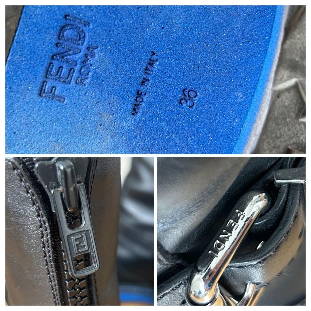 FENDI Short Boots Shoes EU 36 US 6 Leather Black Blue Authentic