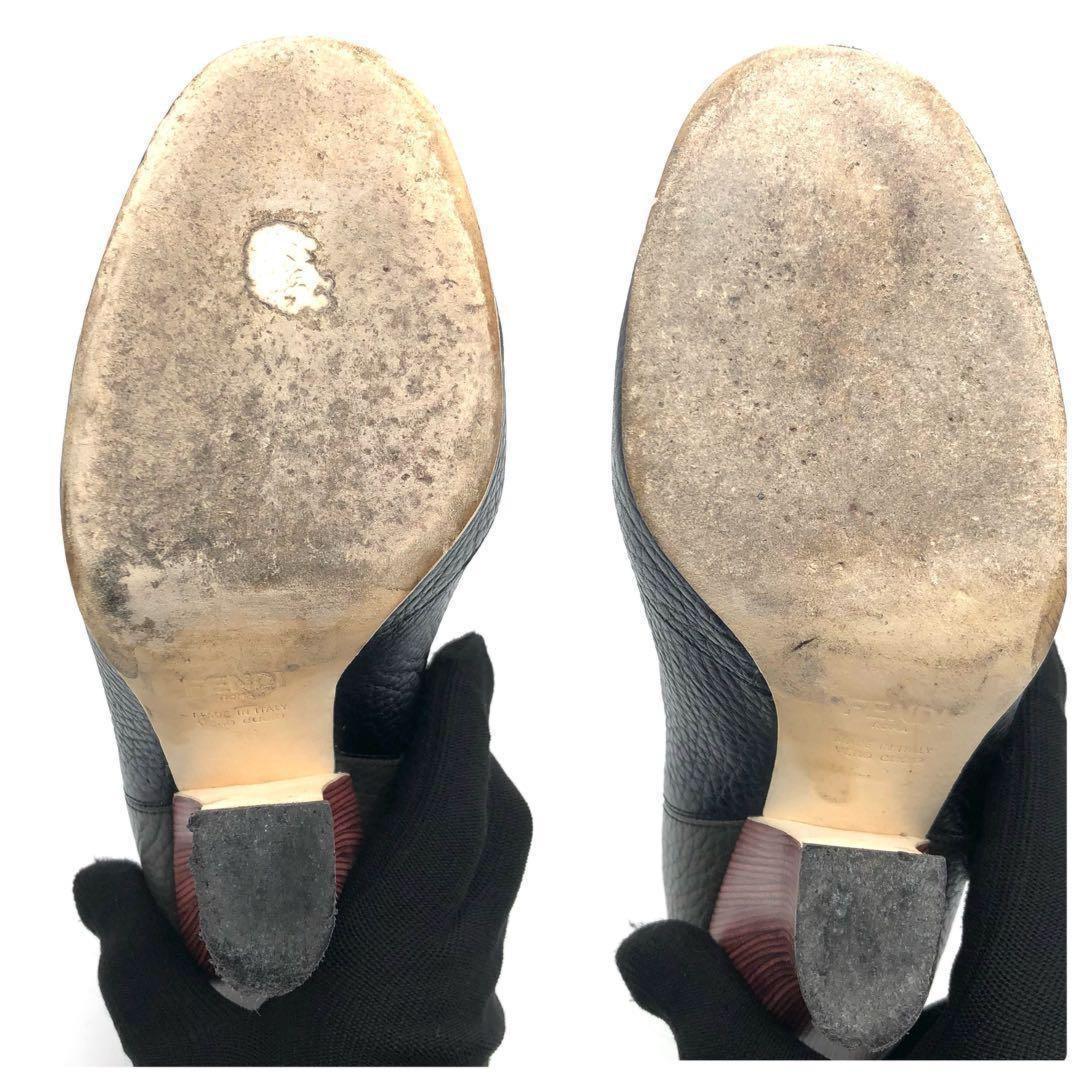 FENDI Short Boots Shoes EU 36 US 6 Leather Black Gray Authentic