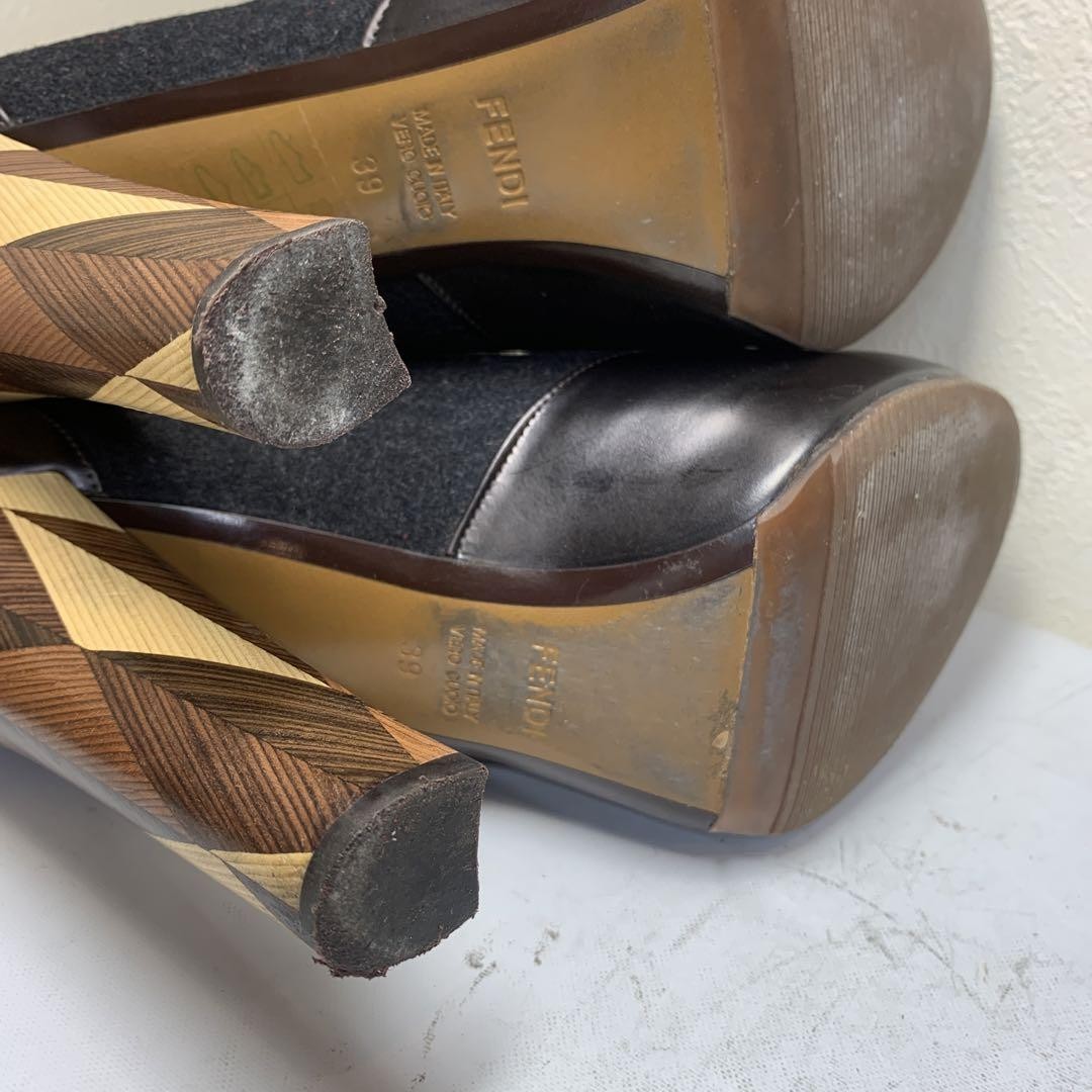 FENDI Short Boots Shoes EU 39 US 9 Leather Brown Authentic