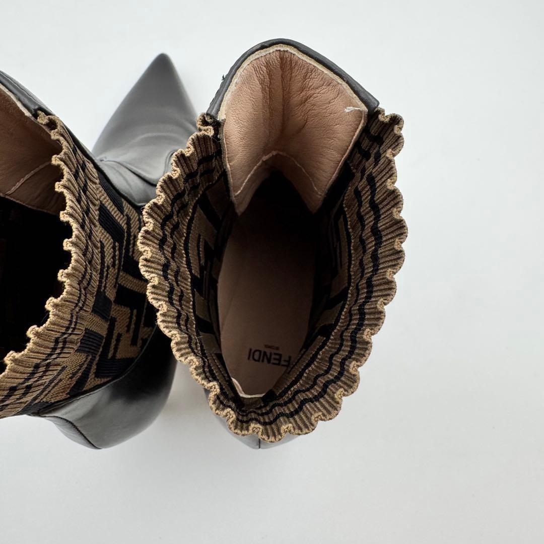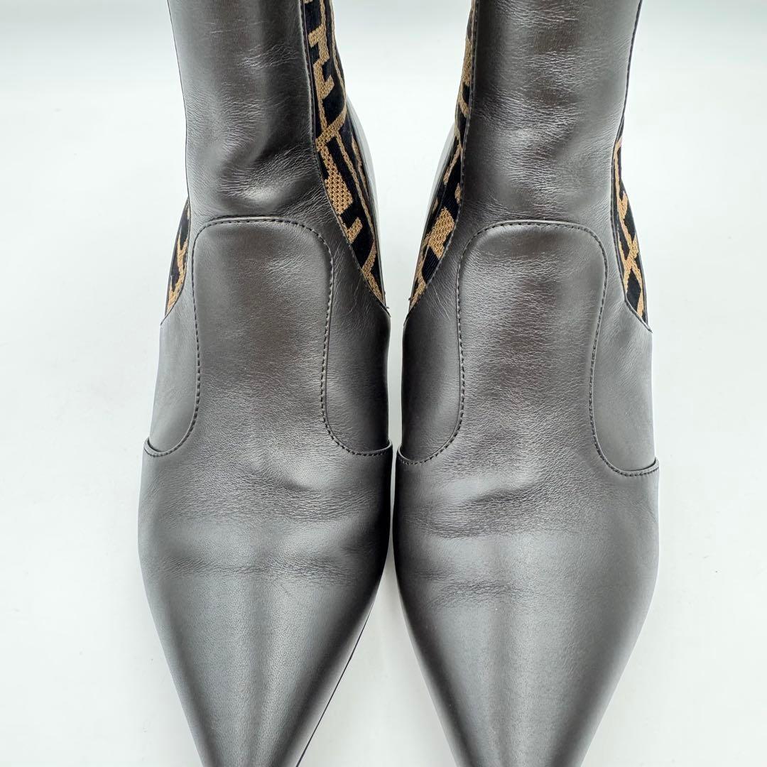FENDI Short Boots Shoes FF Zucca EU 36.0 US 6.0 Leather Brown Authentic
