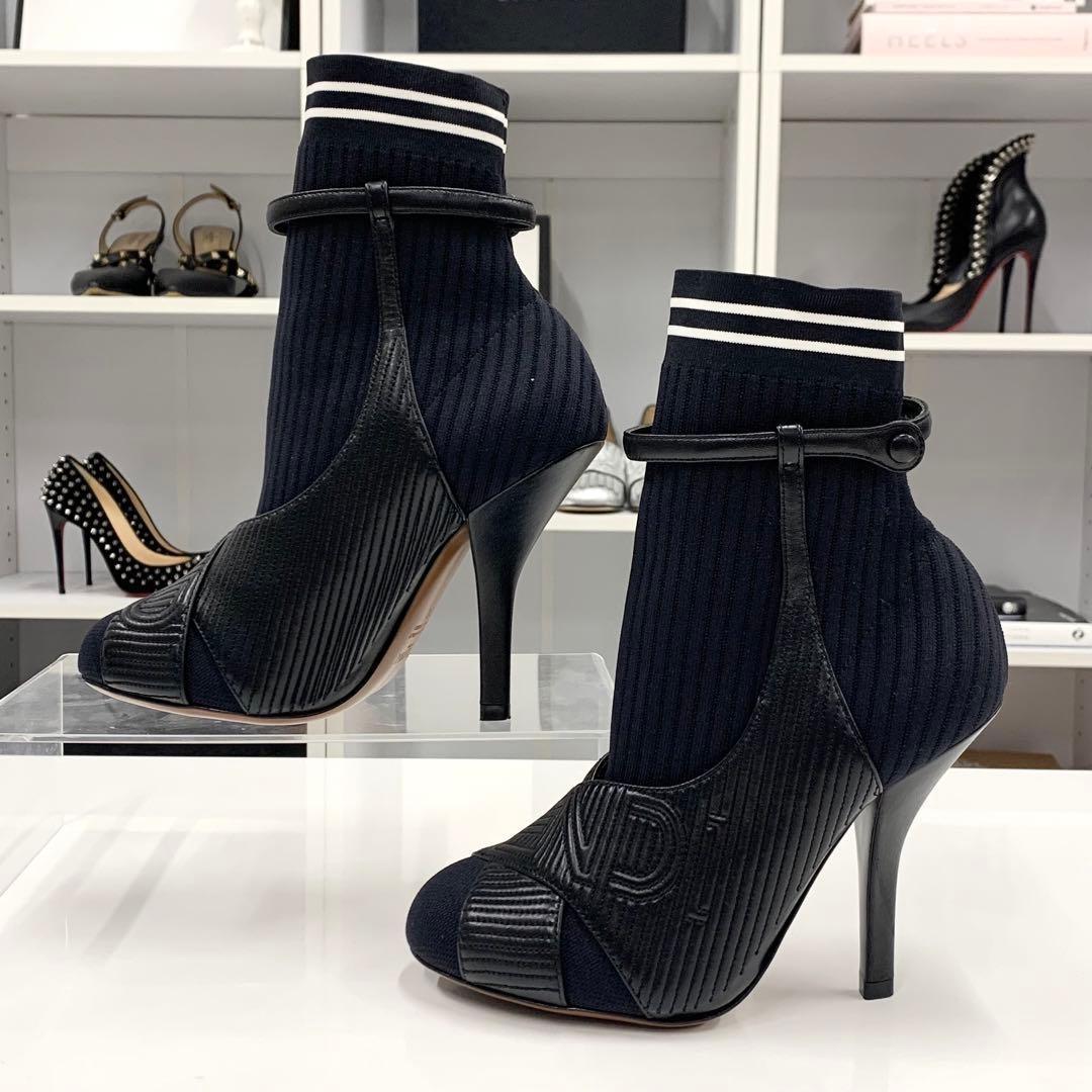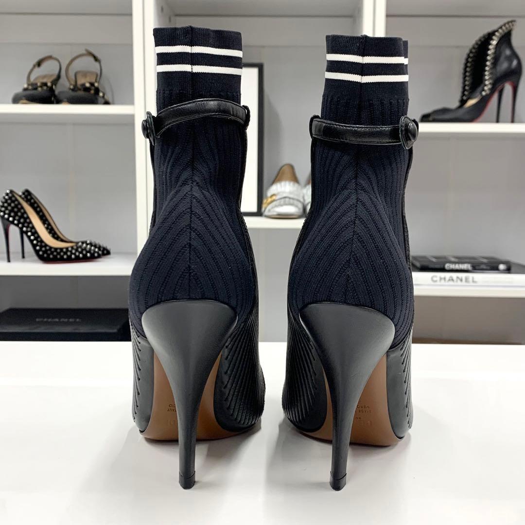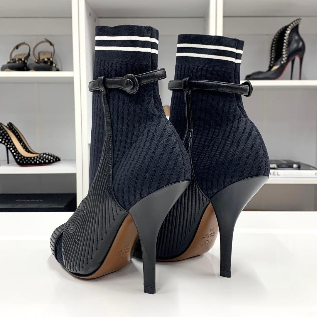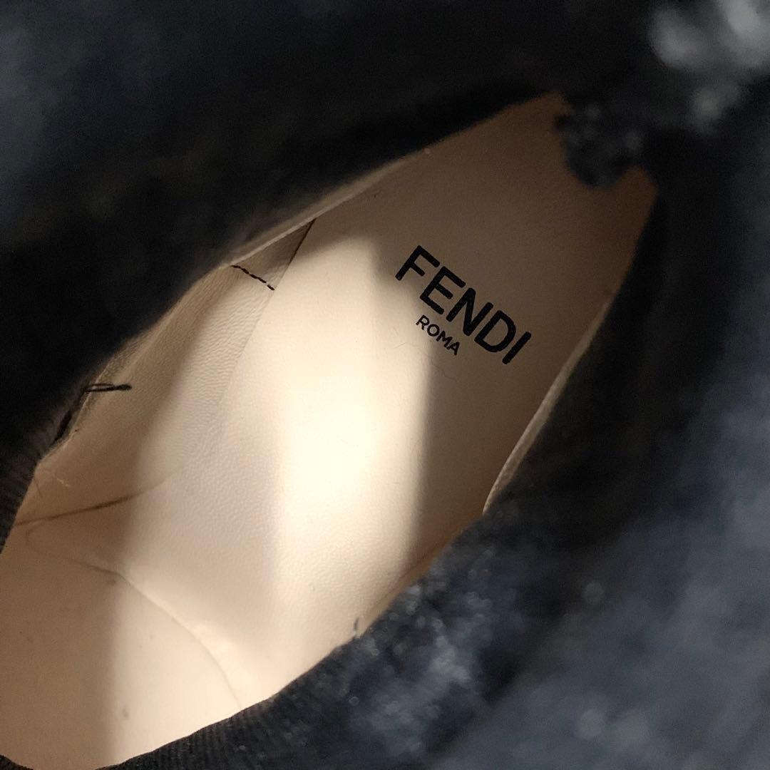 FENDI Short Boots Shoes Logo EU 36 US 6 Fabric Leather Black Authentic