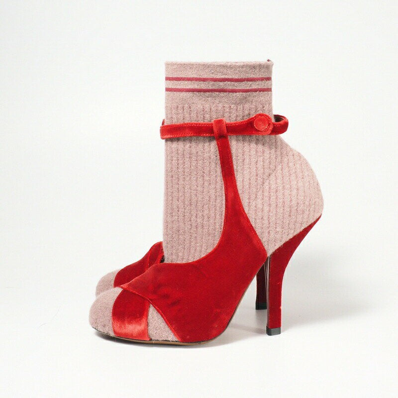 FENDI Short Boots Shoes ROCKOKO EU 37 US 7 Knit Velvet Red Purple Authentic