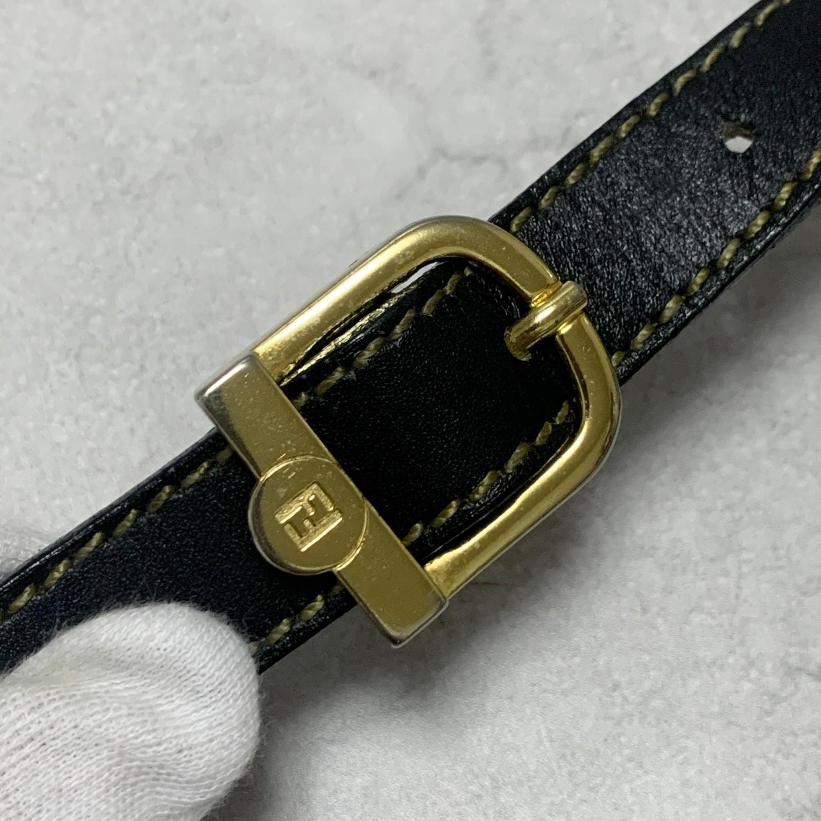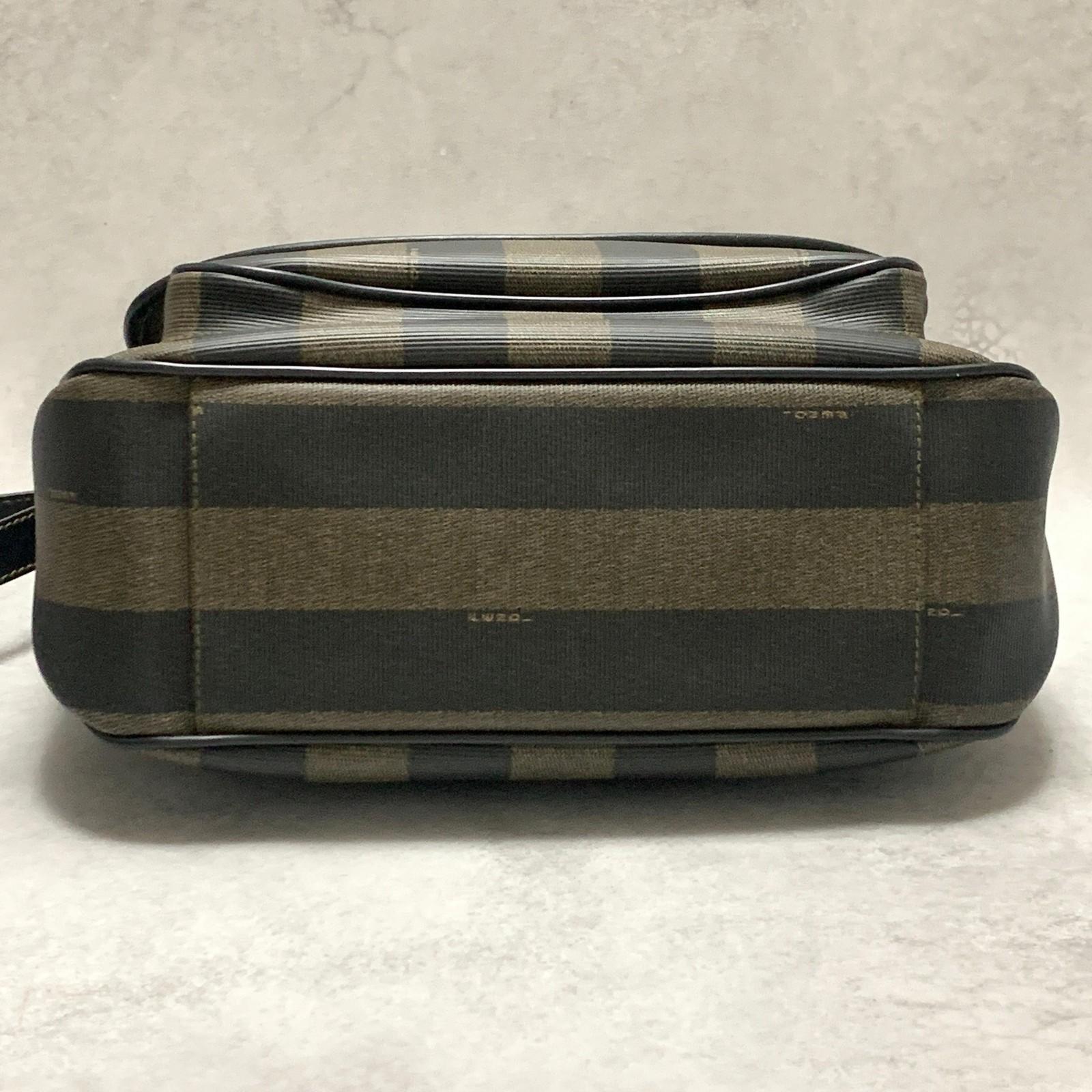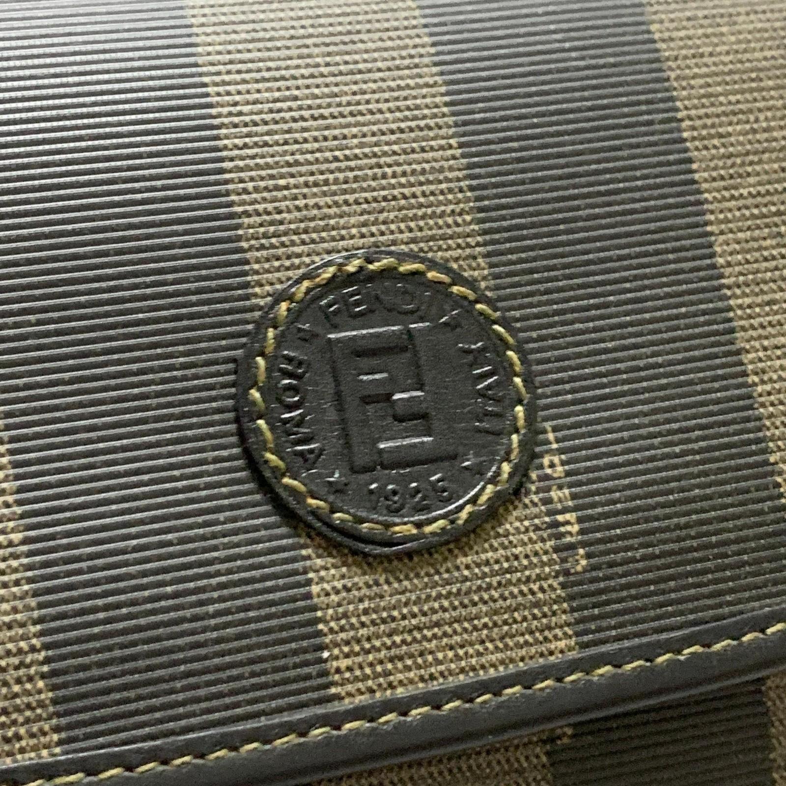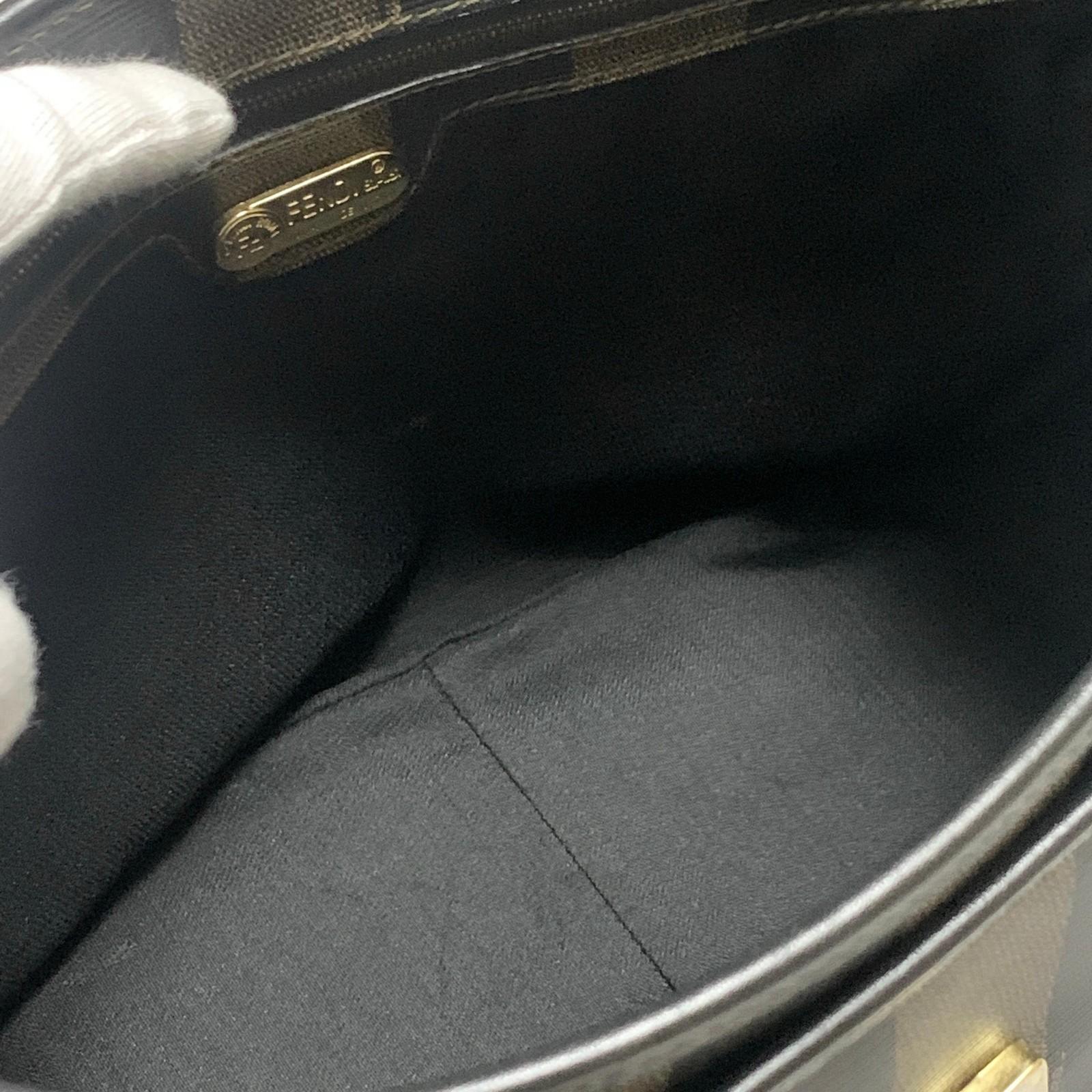 FENDI Shoulder Bag Pecan FF Purse PVC Leather Brown Black Gold Used Women's Auth