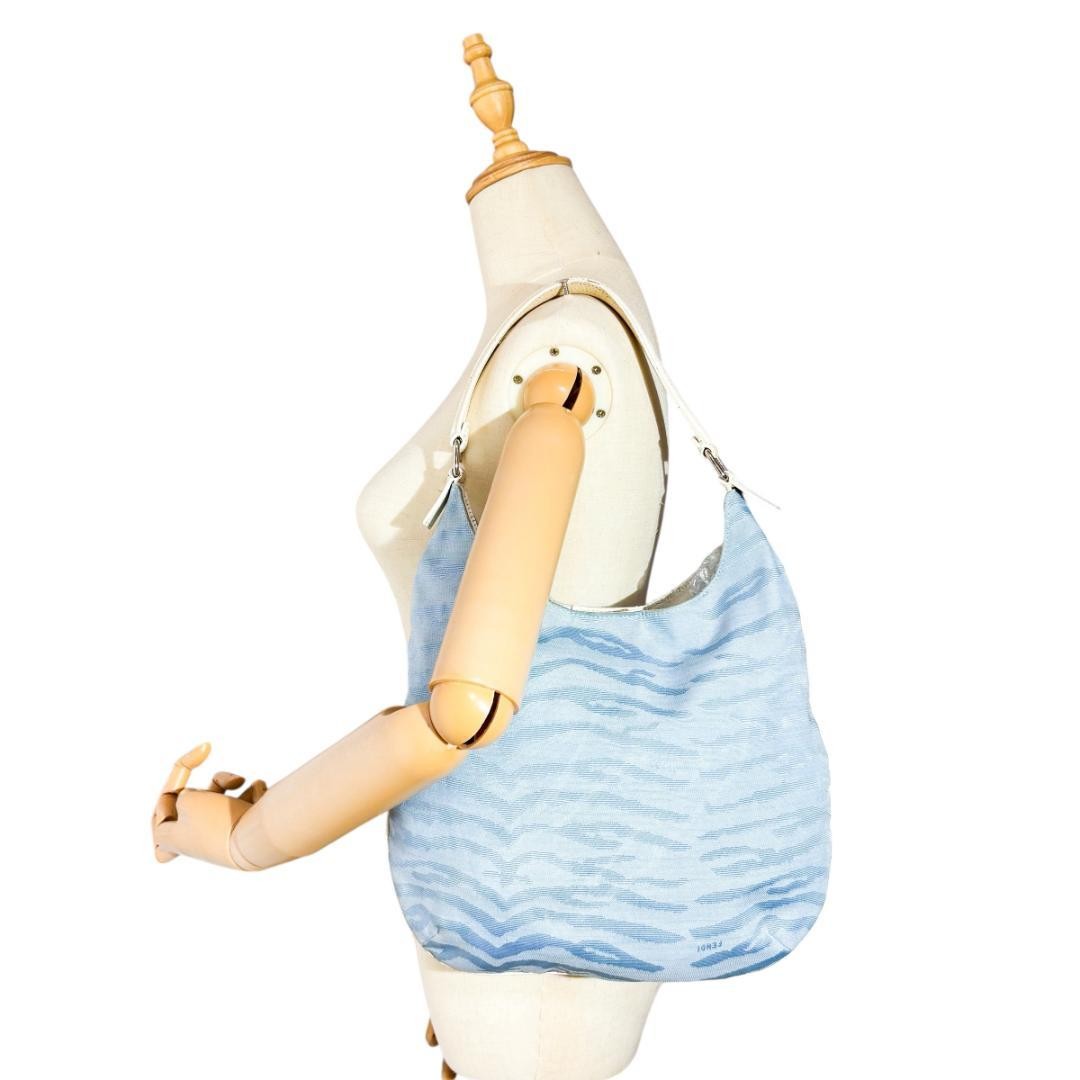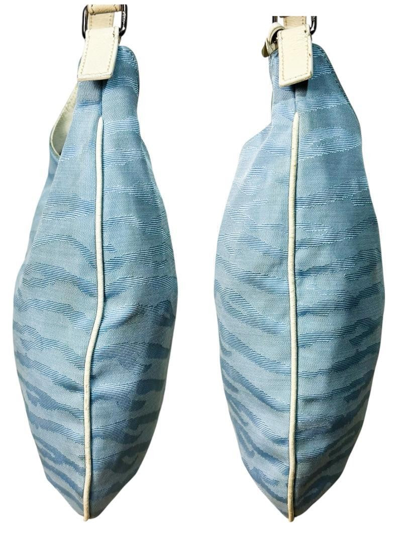 FENDI Shoulder Bag Purse Canvas Leather Light Blue Authentic