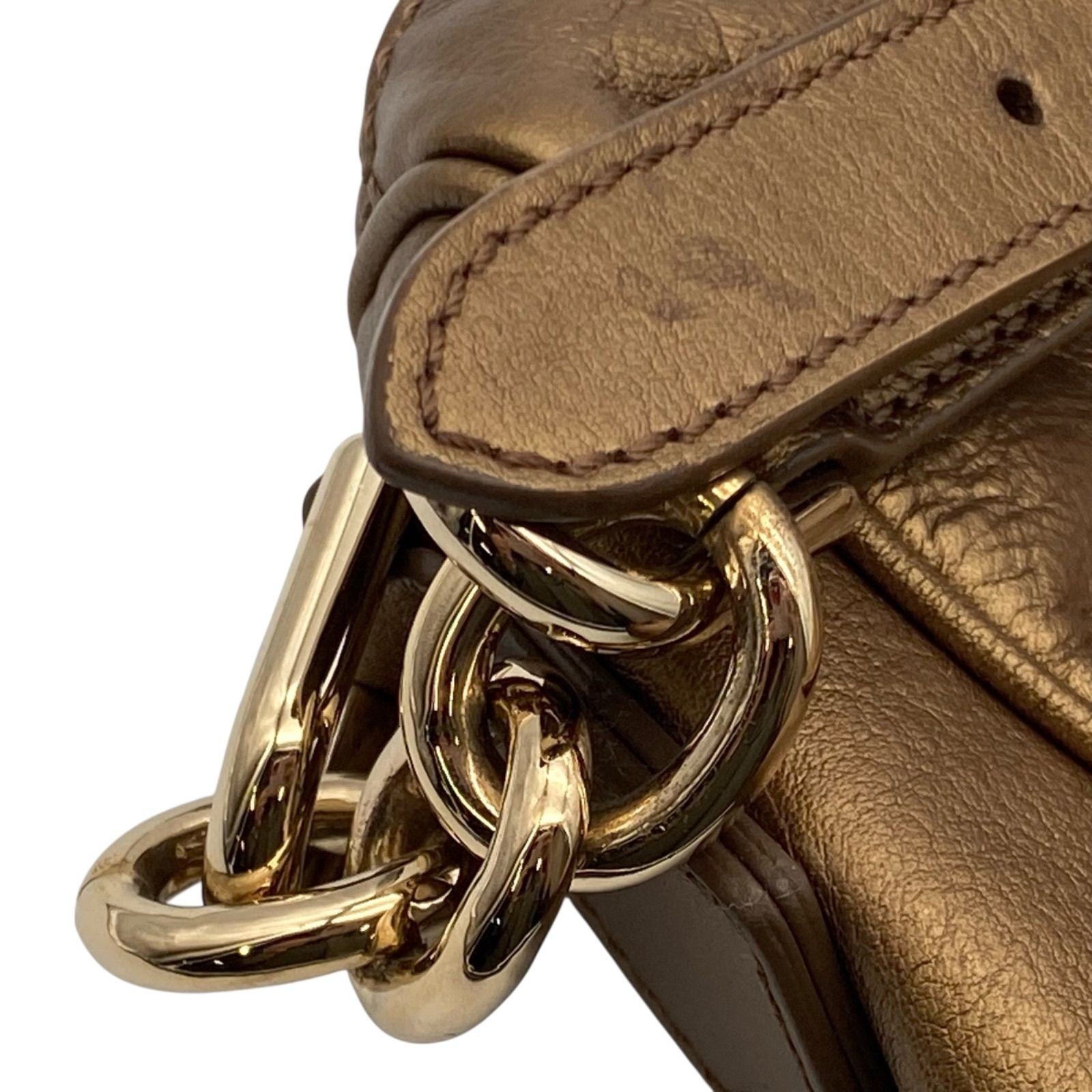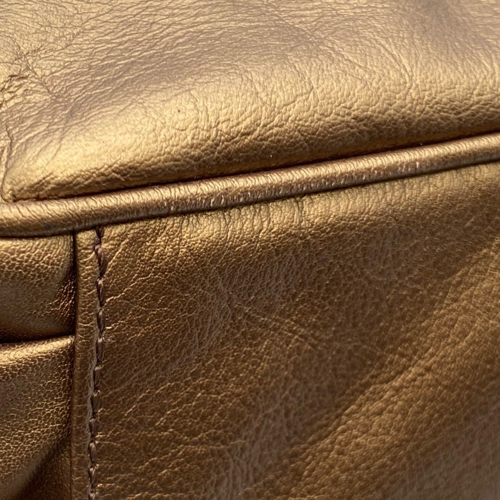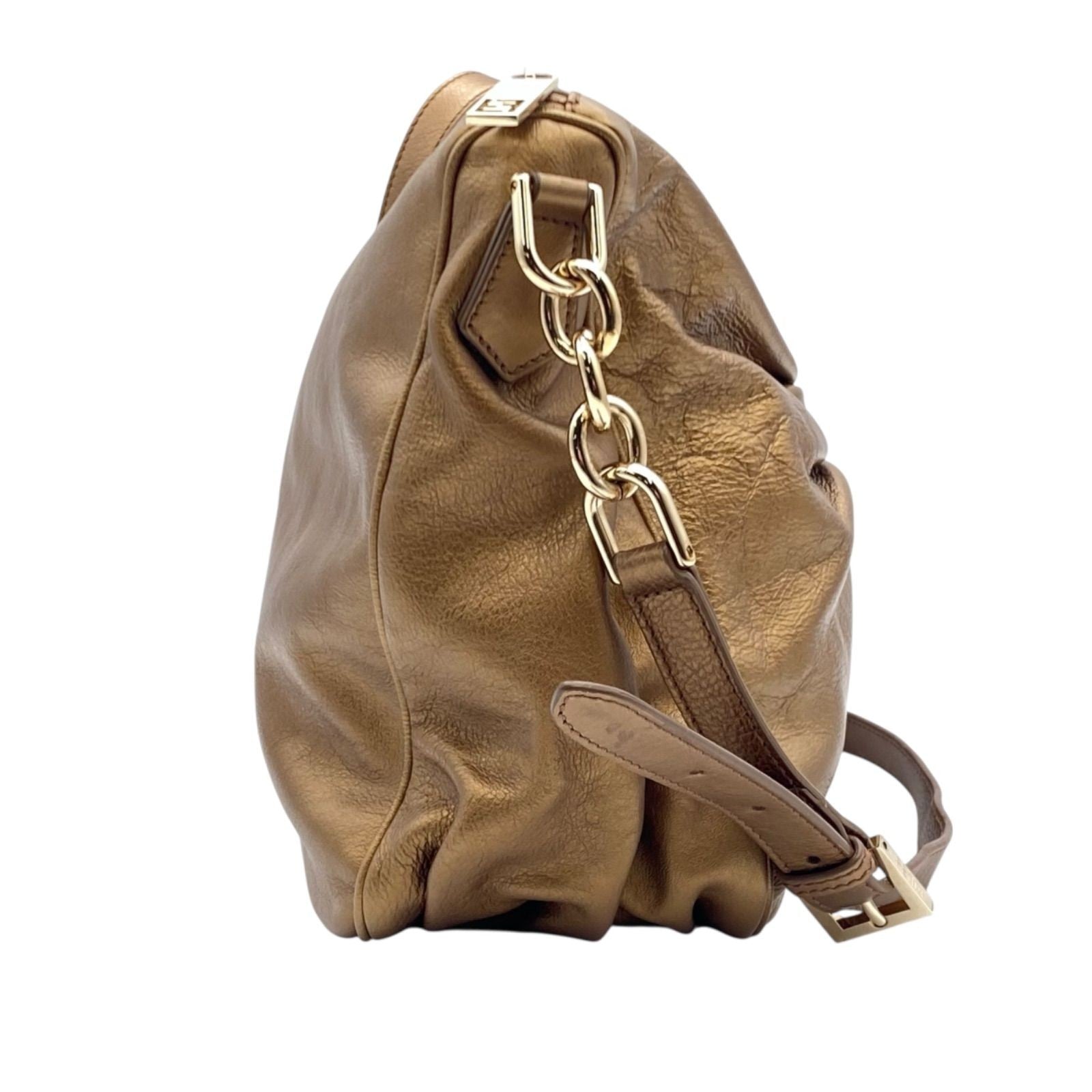 FENDI Shoulder Bag Purse FF Baguette Leather Gold Authentic