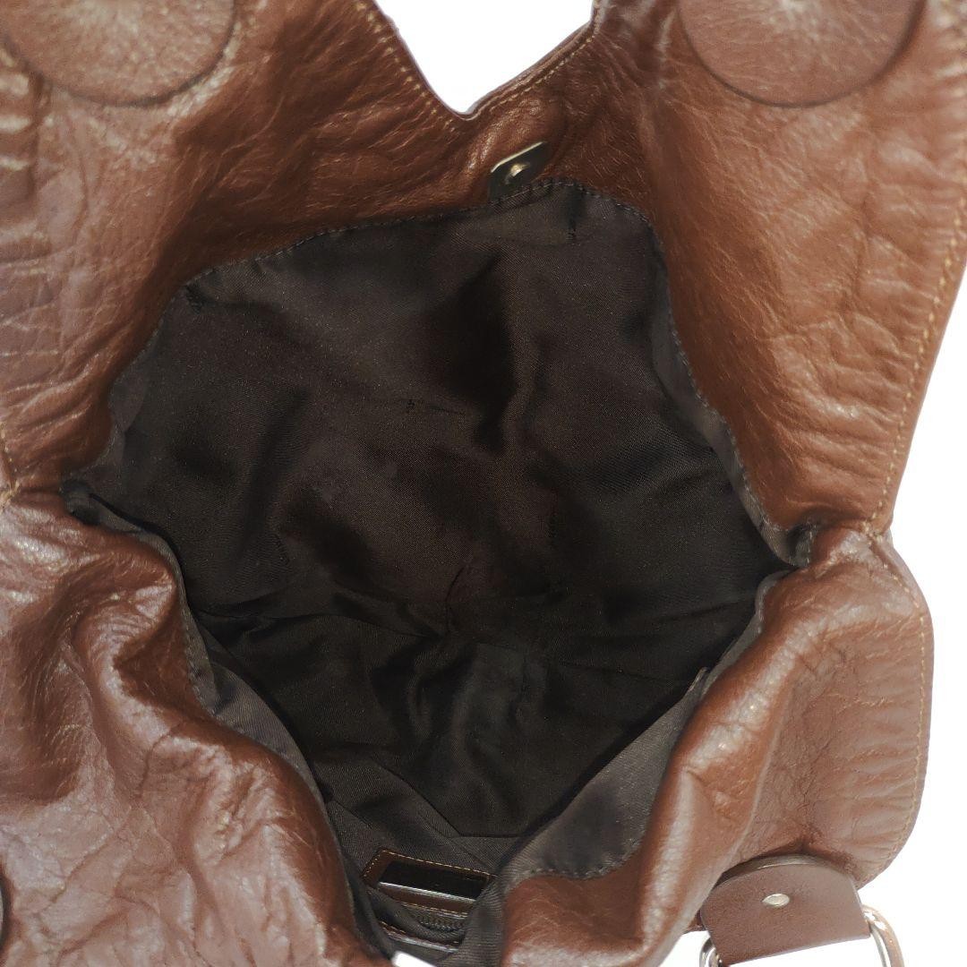 FENDI Shoulder Bag Purse FF Leather Brown Authentic