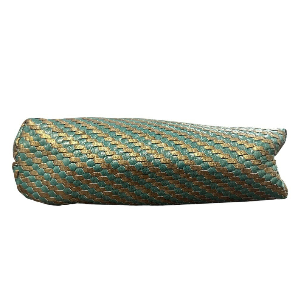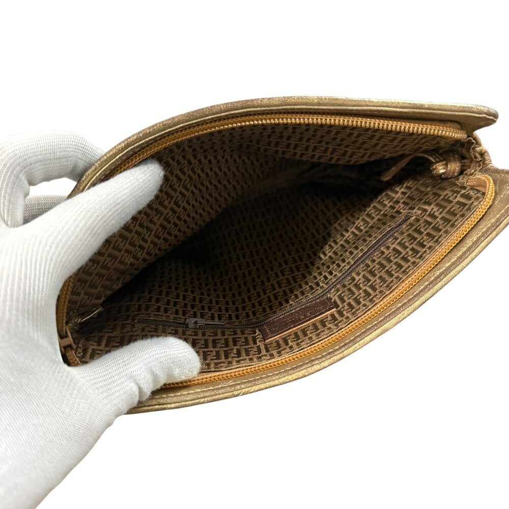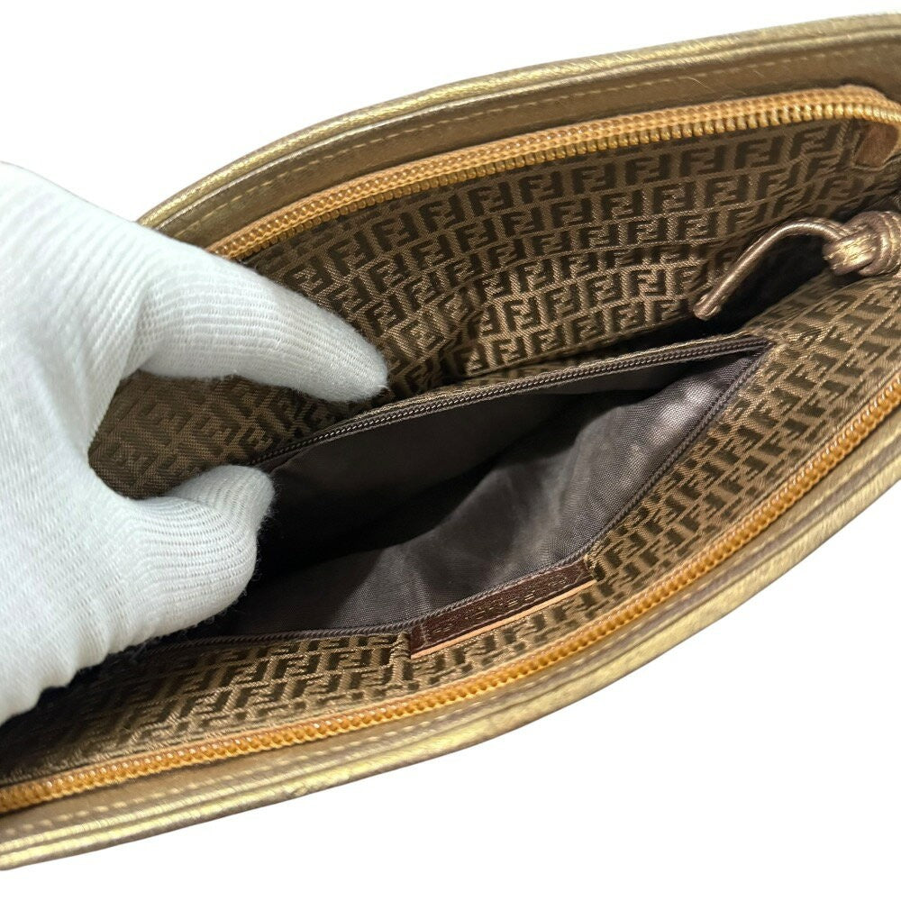 FENDI Shoulder Bag Purse FF Leather Green Gold Authentic