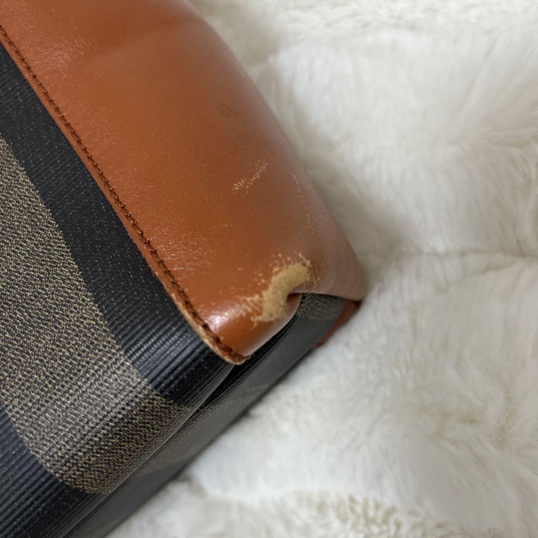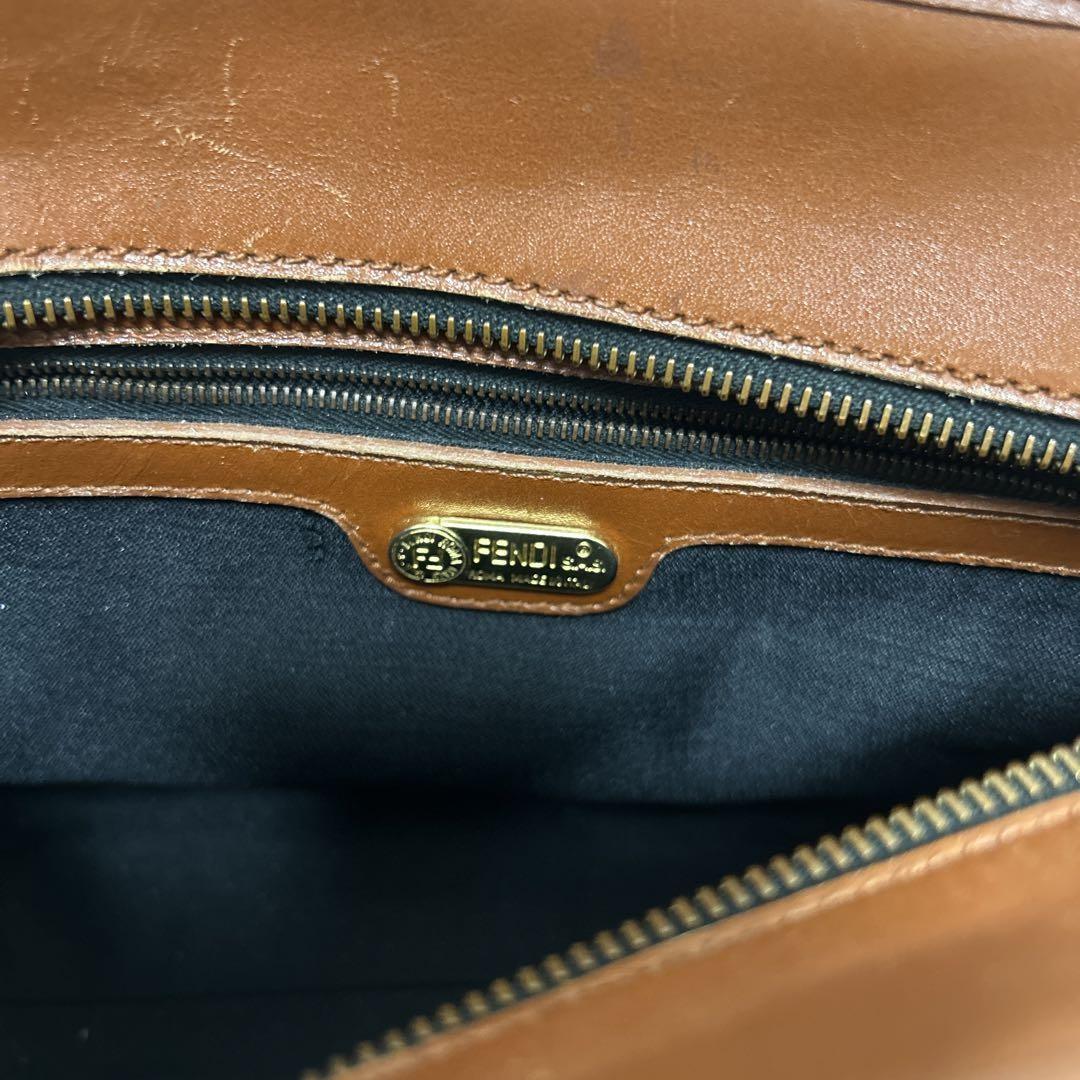FENDI Shoulder Bag Purse FF Pecan Canvas Leather Brown Black Authentic