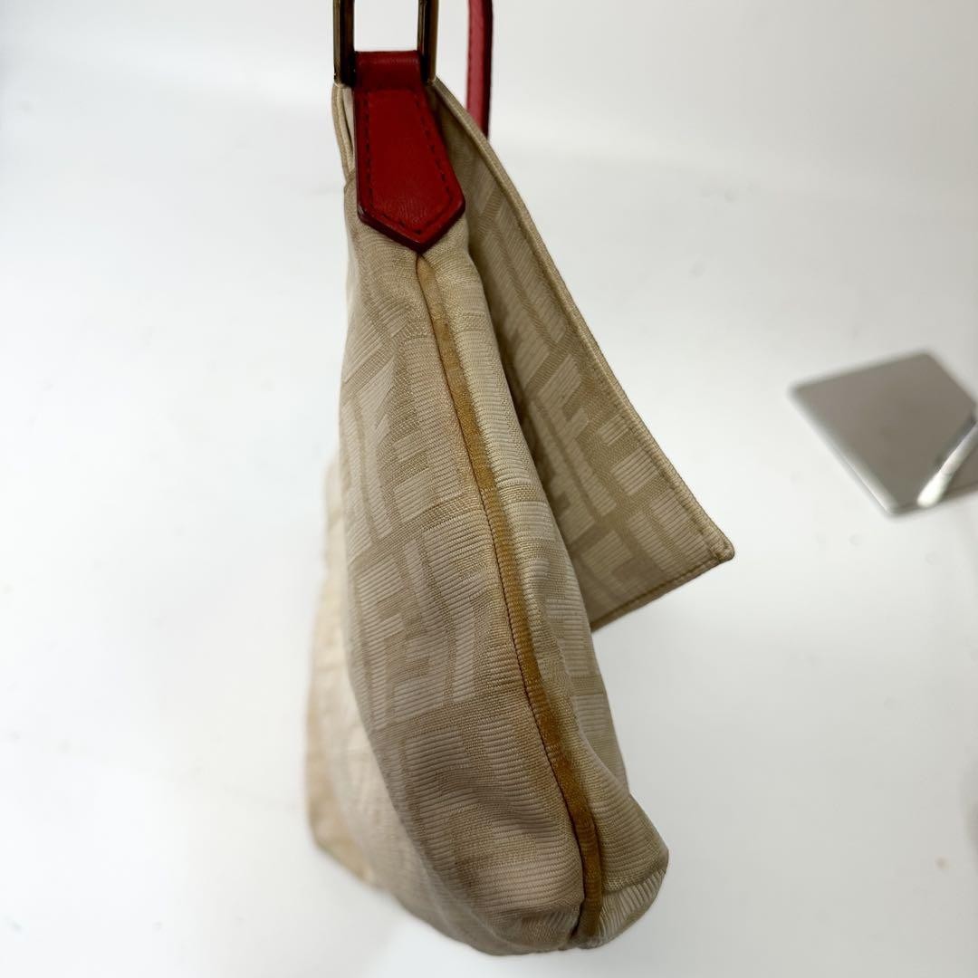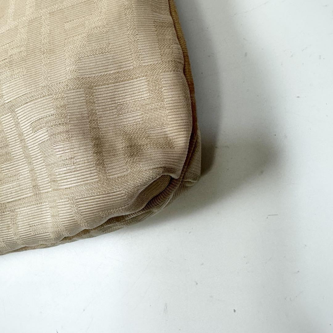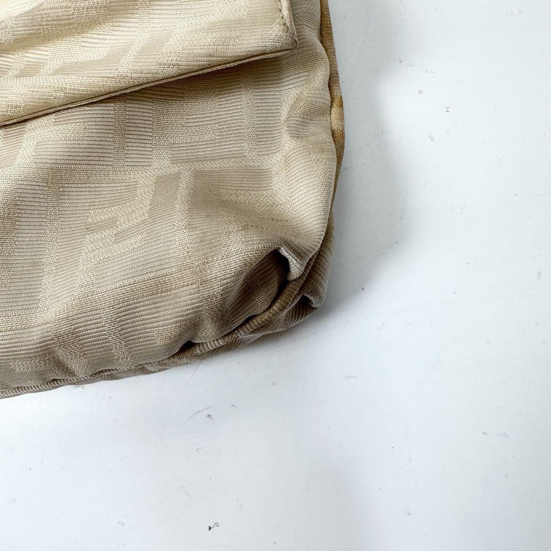 FENDI Shoulder Bag Purse FF Zucca Baguette Canvas Beige Off White Authentic