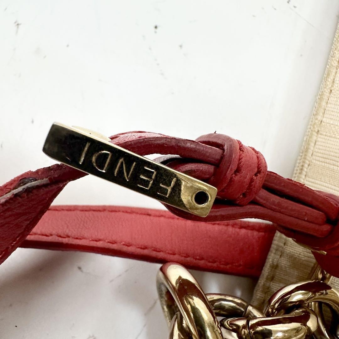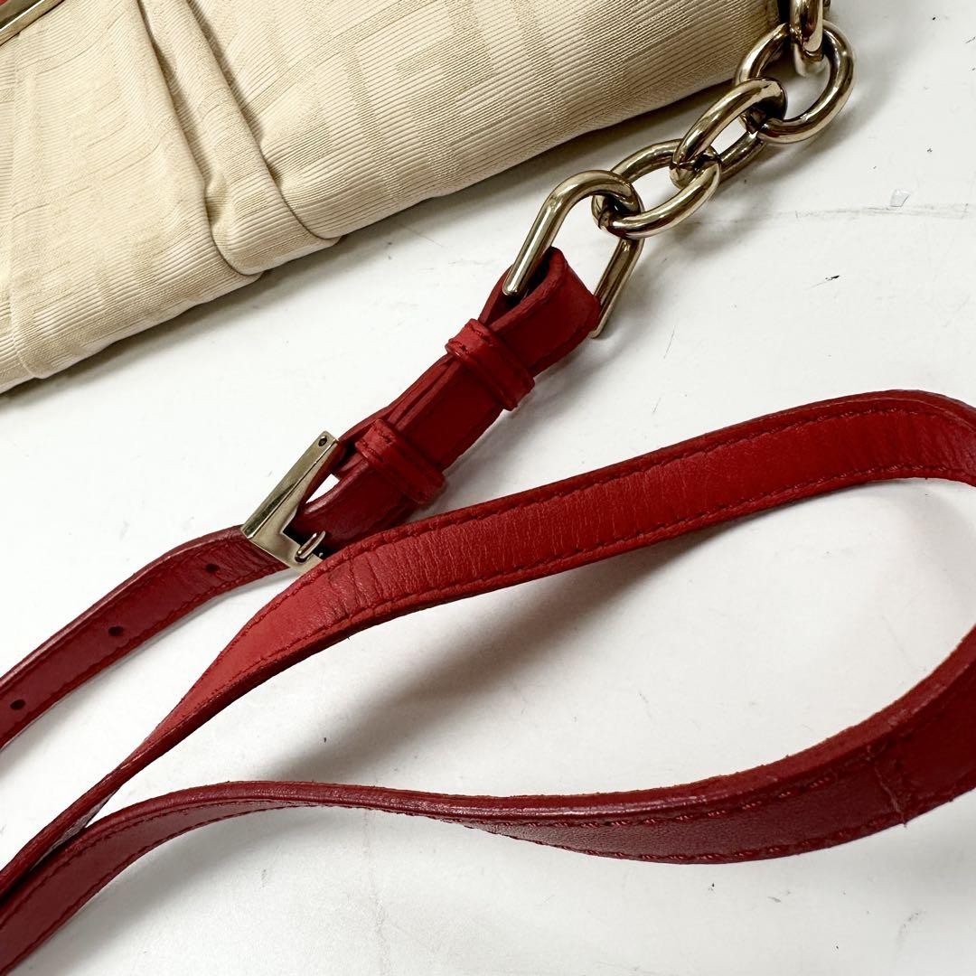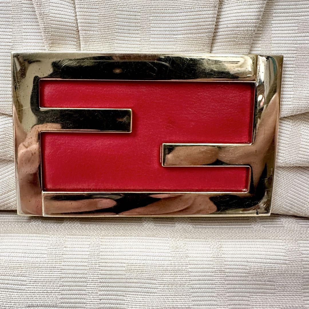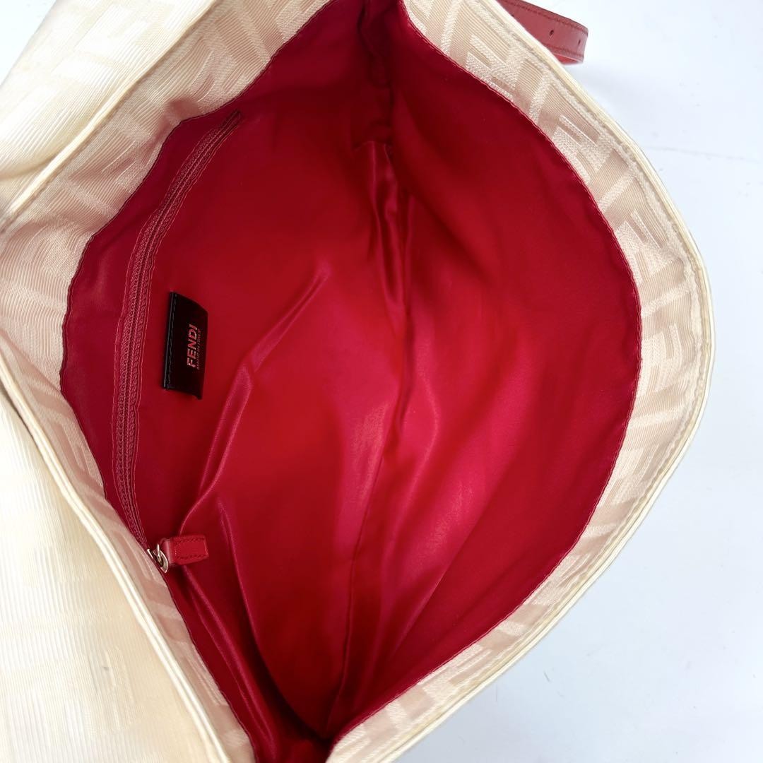 FENDI Shoulder Bag Purse FF Zucca Baguette Canvas Beige Off White Authentic
