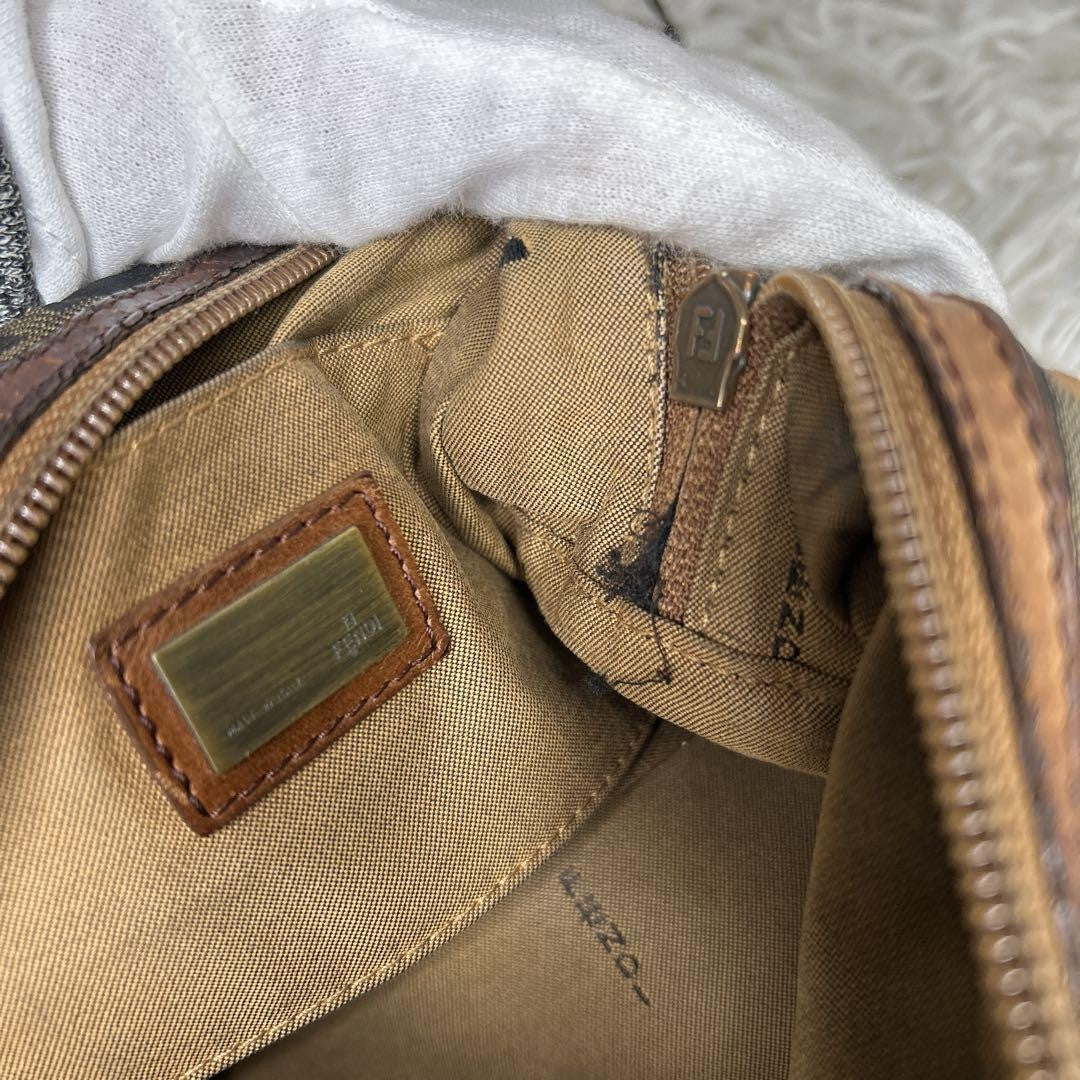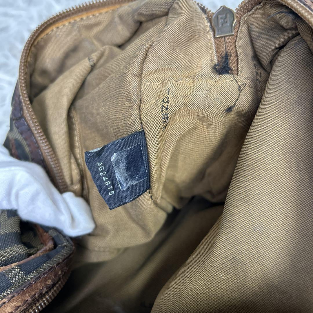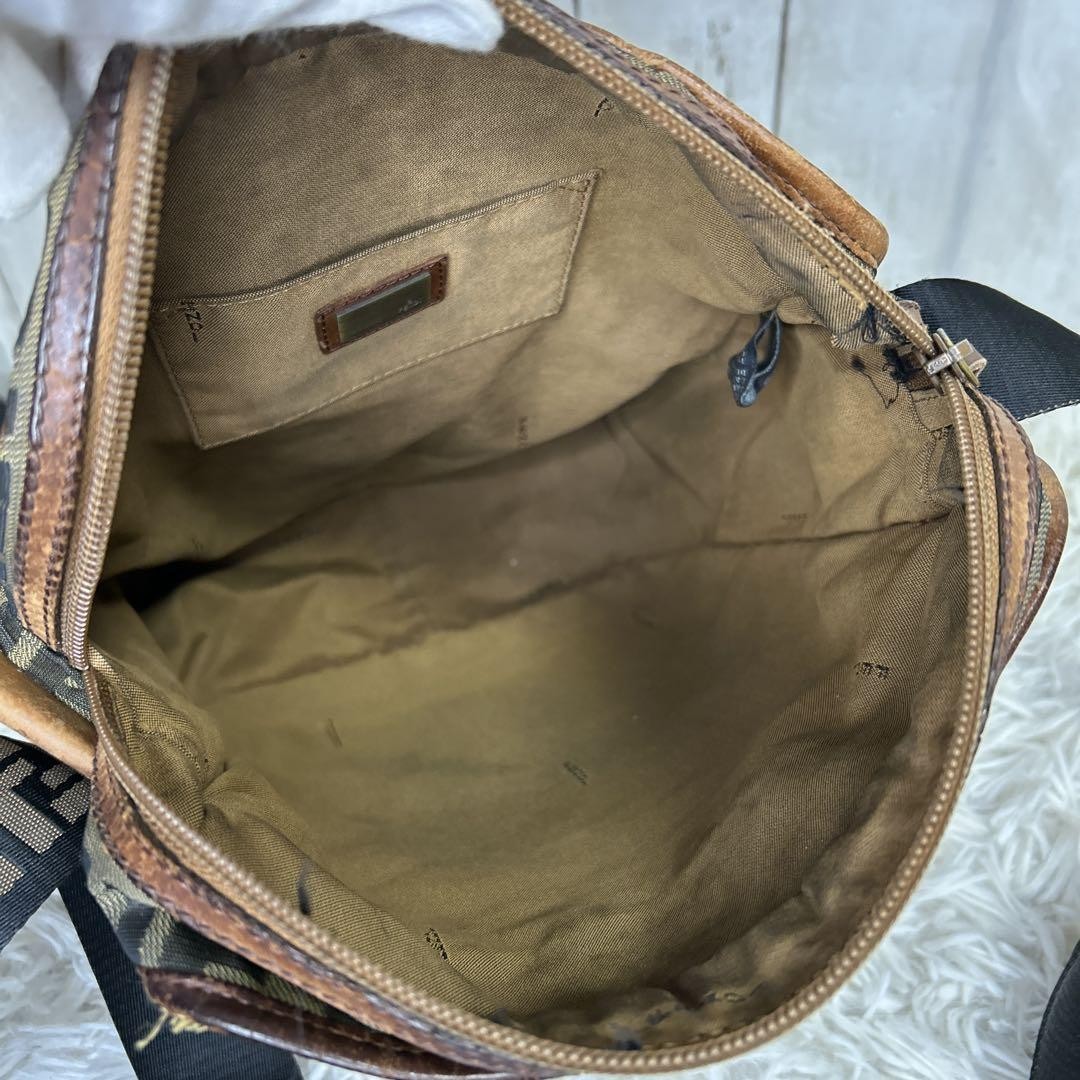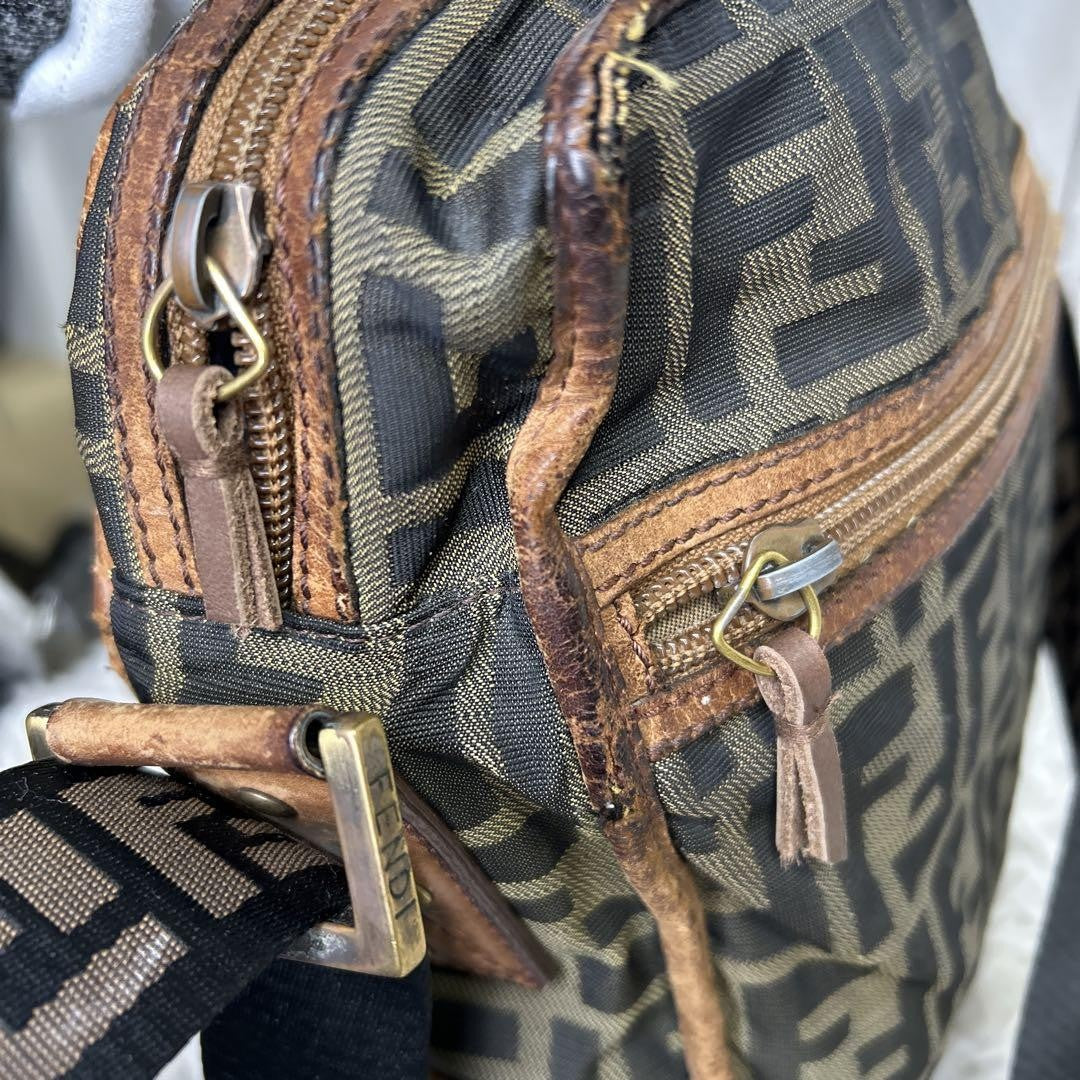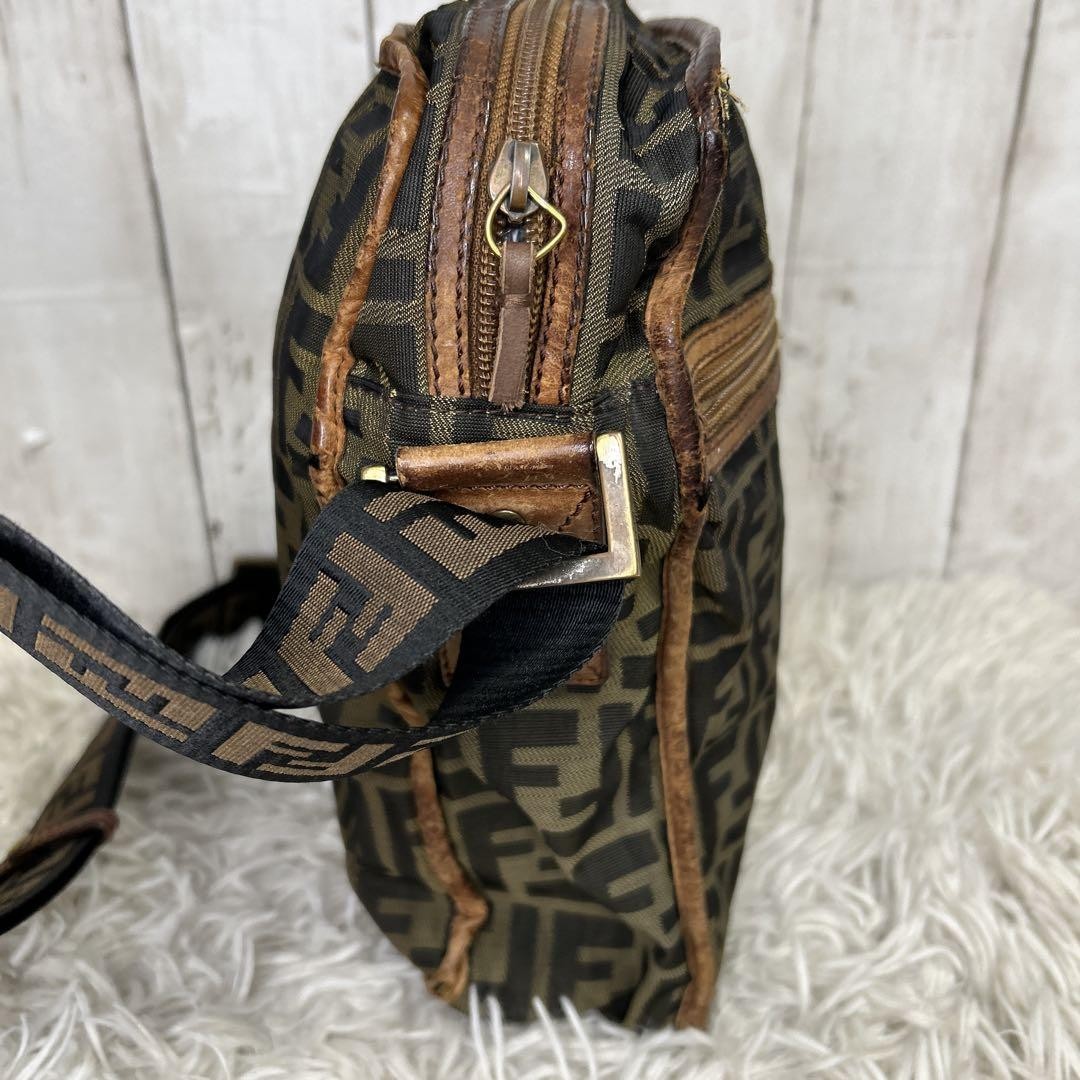 FENDI Shoulder Bag Purse FF Zucca Nylon Canvas Brown Authentic