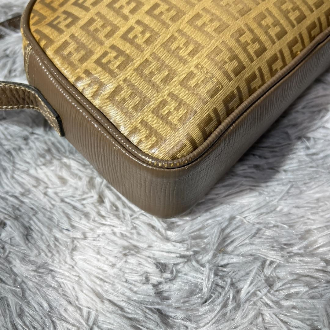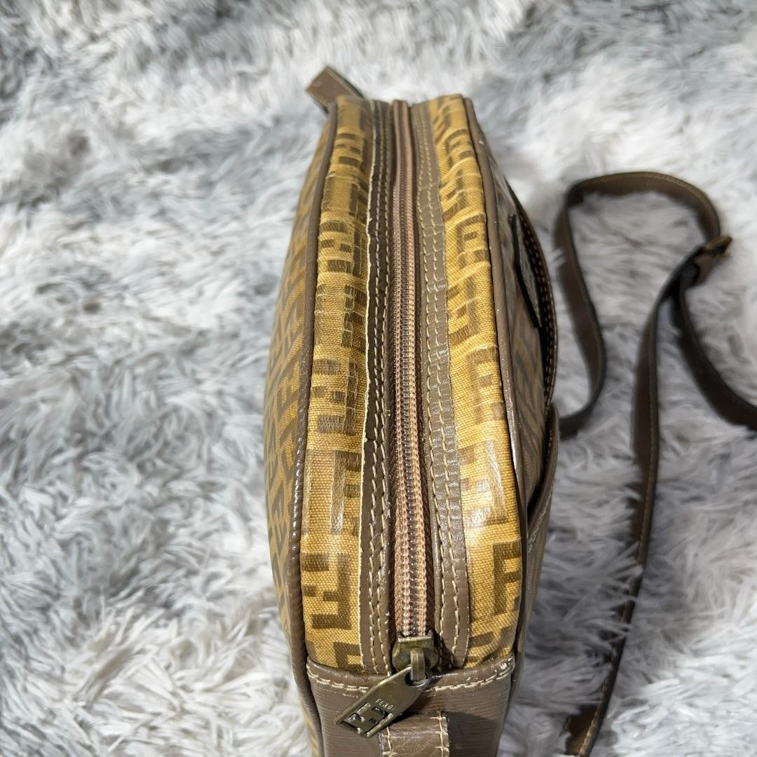 FENDI Shoulder Bag Purse FF Zucca PVC Brown Authentic