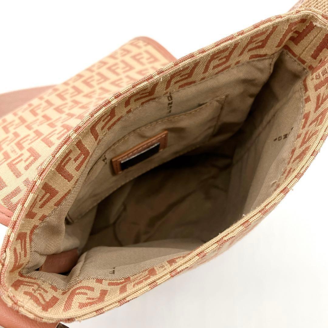 FENDI Shoulder Bag Purse FF Zucchino Canvas Leather Pink Beige Authentic