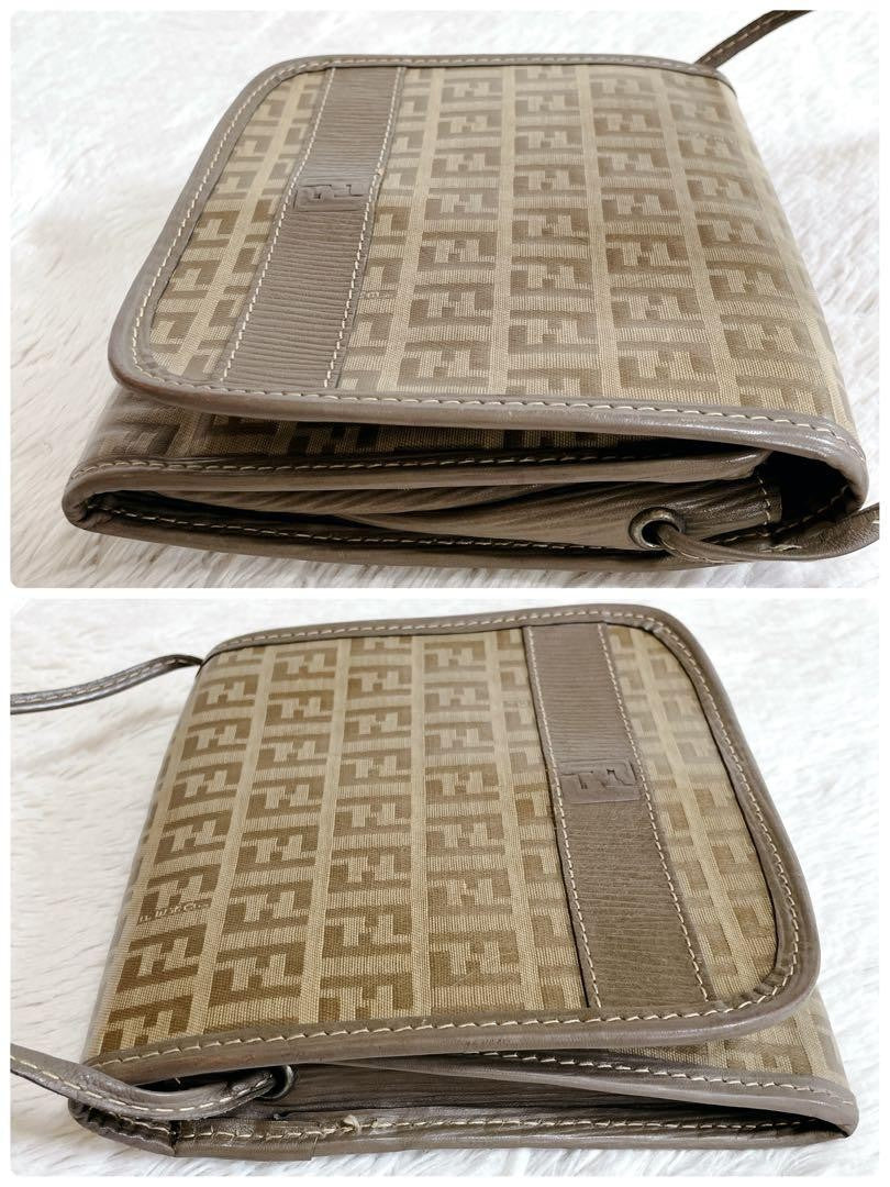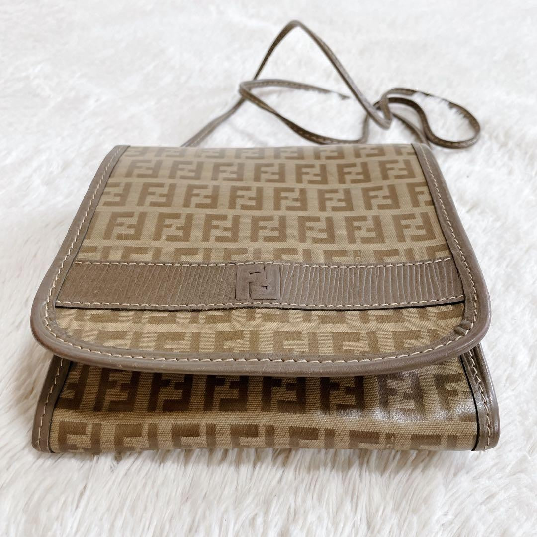 FENDI Shoulder Bag Purse FF Zucchino PVC Leather Beige Authentic