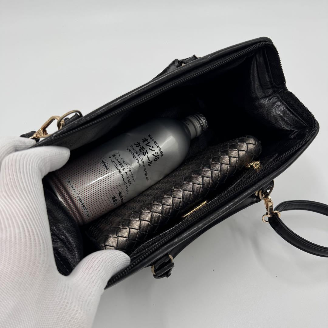 FENDI Shoulder Bag Purse Mini Boston 2way Leather Black Authentic