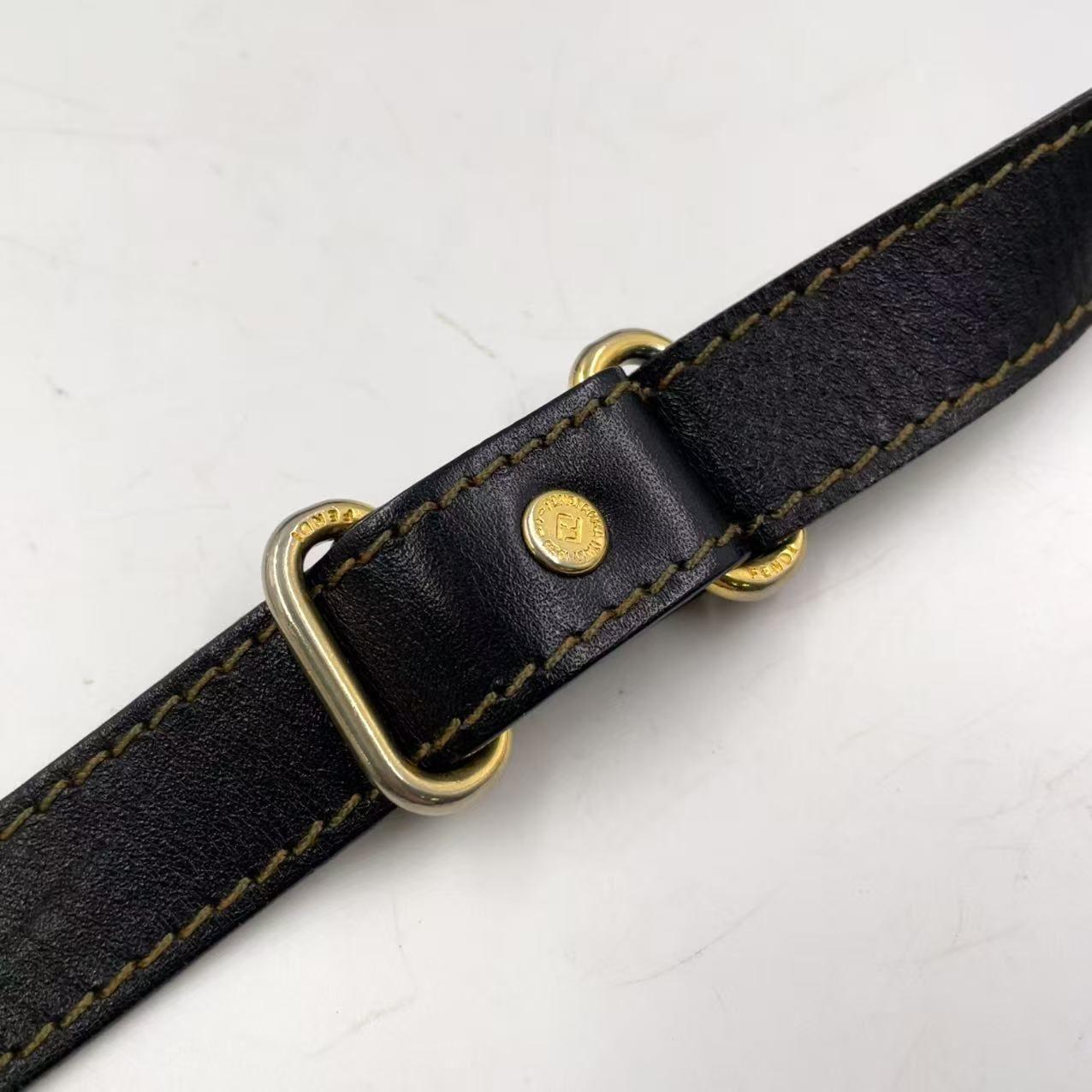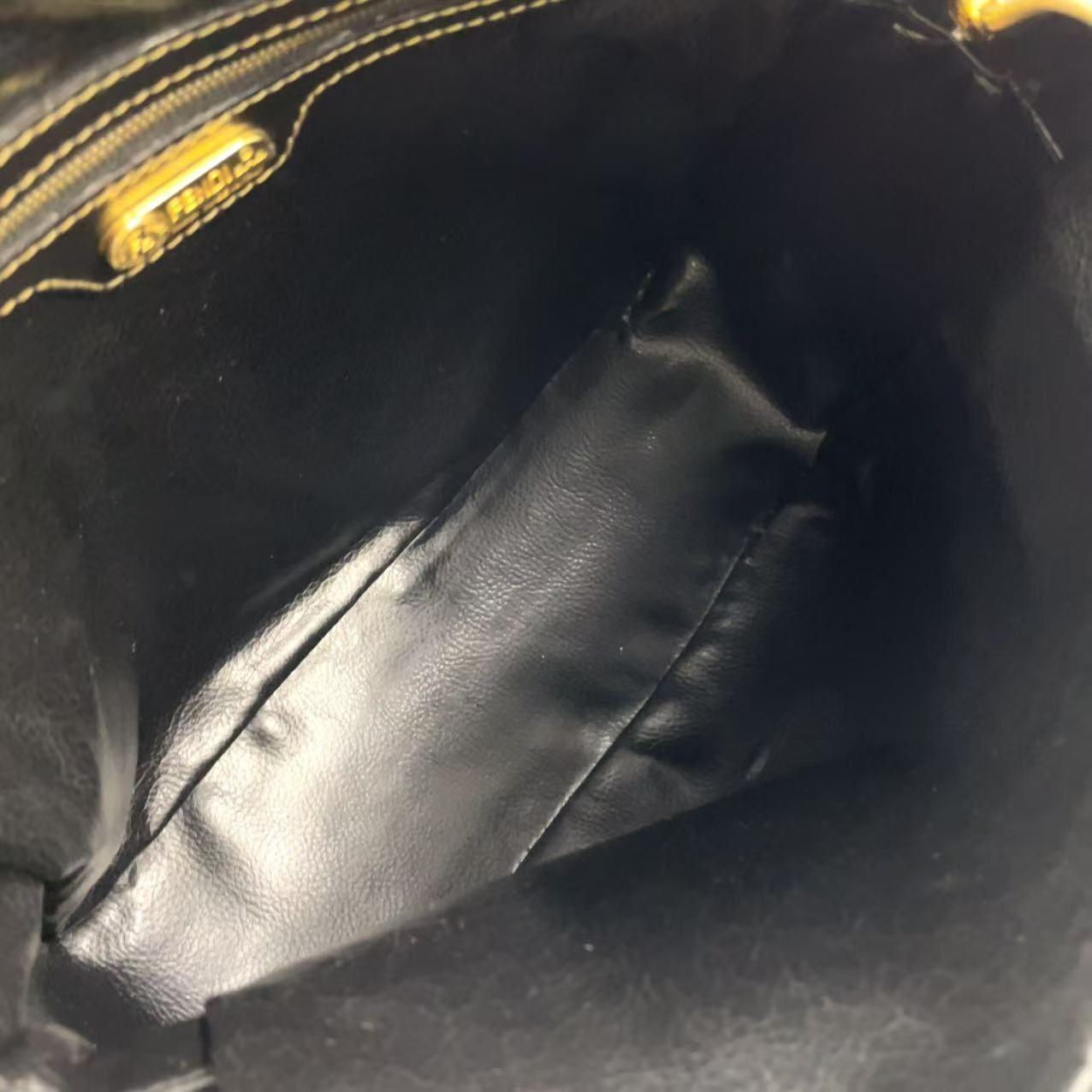 FENDI Shoulder Bag Purse Pecan Leather PVC Black Beige Authentic