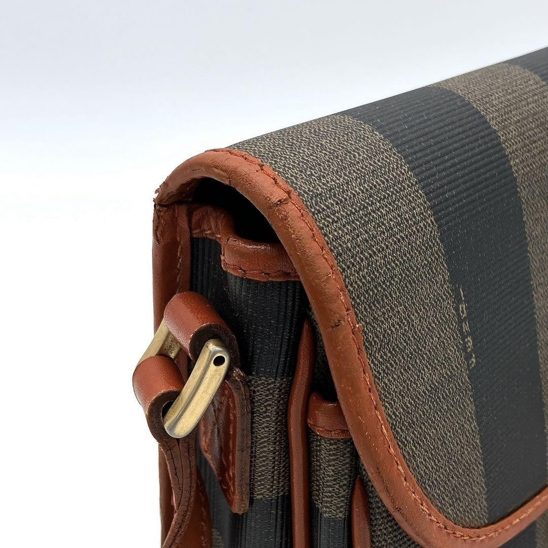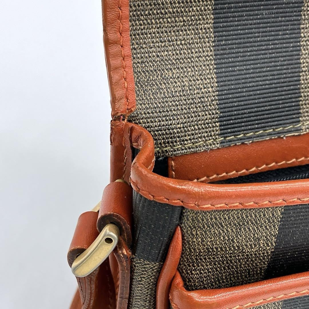 FENDI Shoulder Bag Purse Pecan PVC Leather Brown Black Authentic