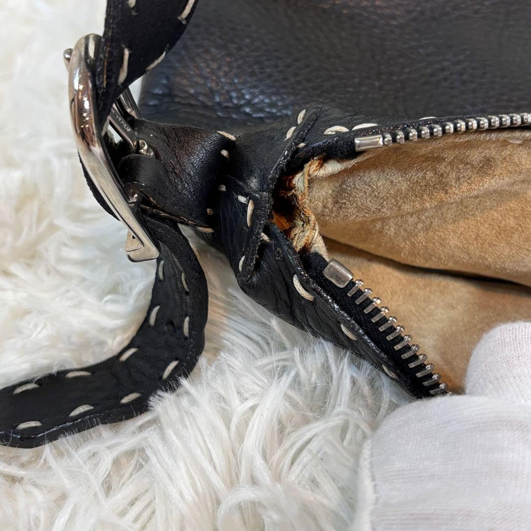 FENDI Shoulder Bag Purse Selleria Leather Black Authentic