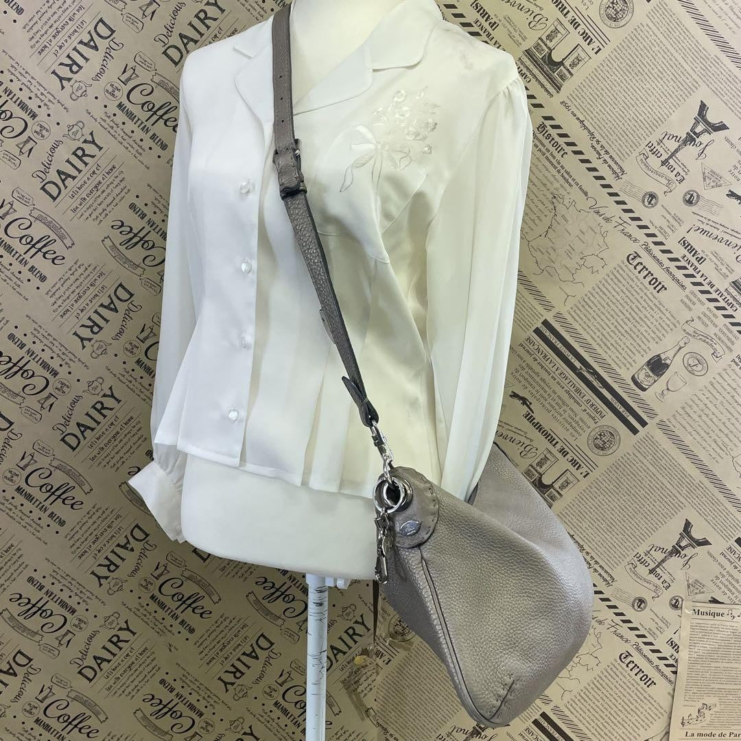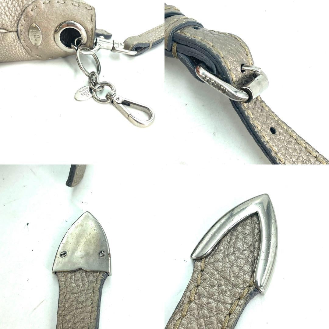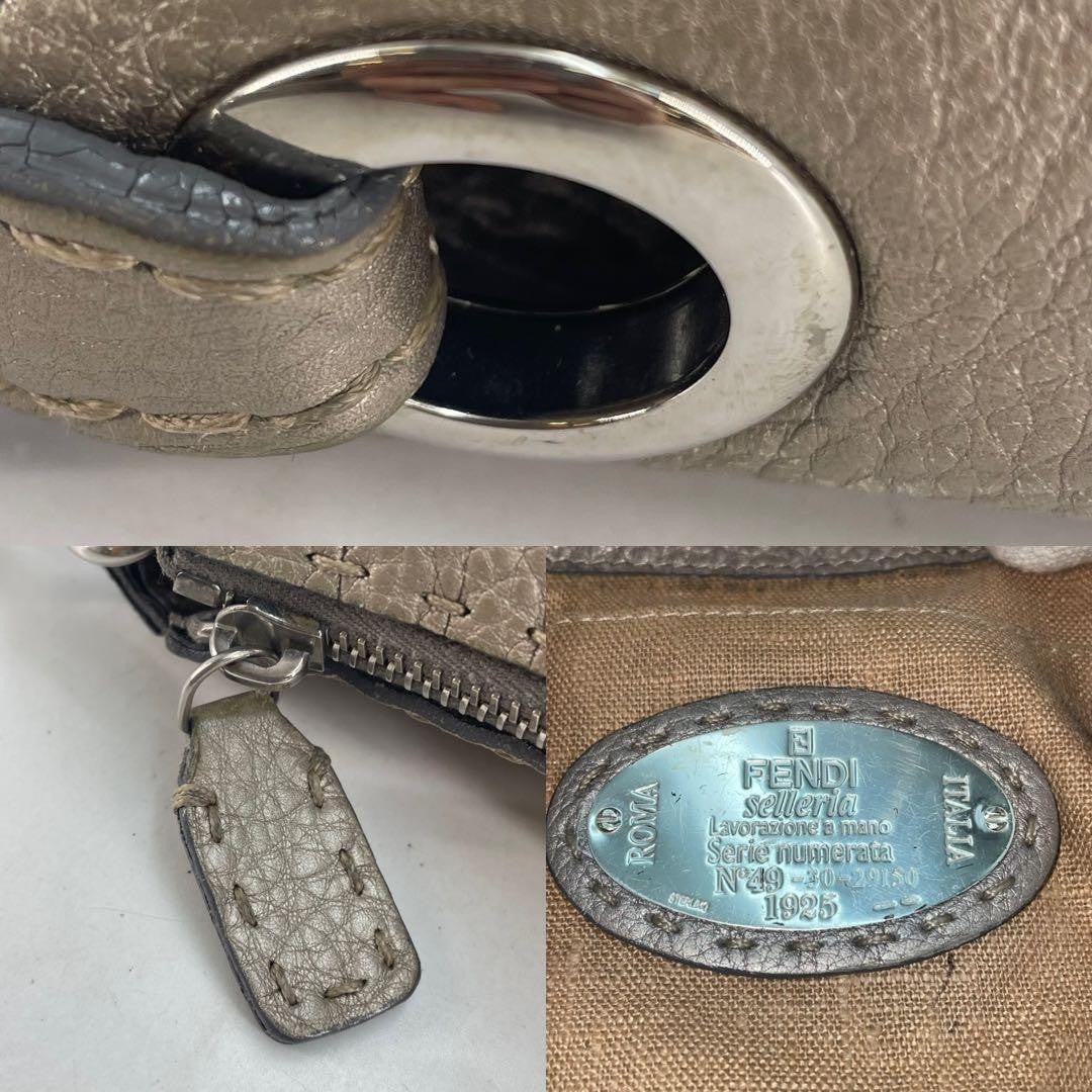 FENDI Shoulder Bag Purse Selleria Leather Greige Authentic