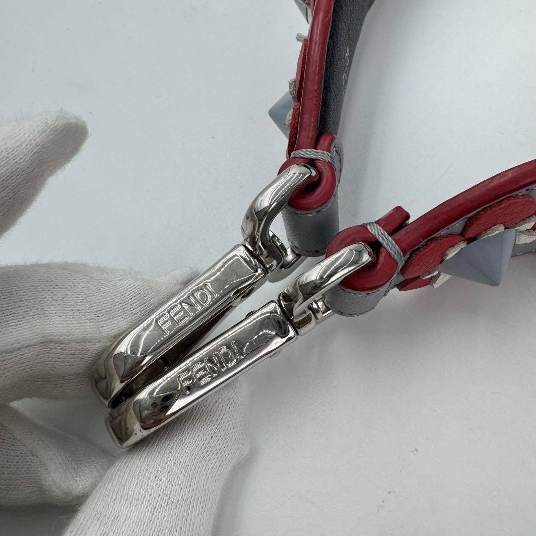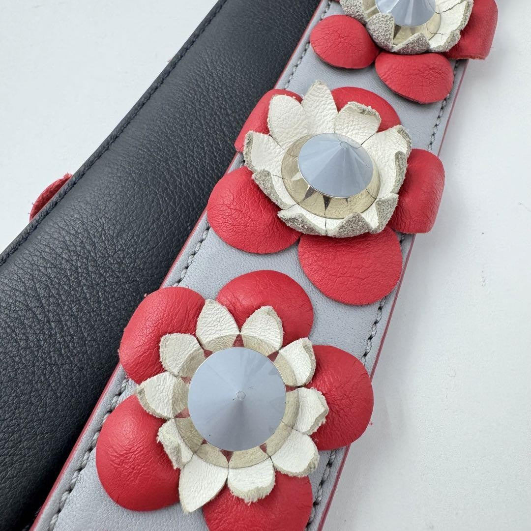 FENDI Shoulder Strap Strap you Belt Flower Leather Red Navy Blue Authentic