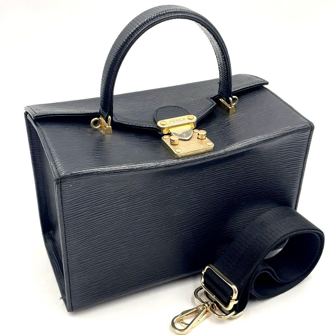 FENDI Vanity Bag Hand Shoulder Bag Tote Purse 2way Leather Black Authentic