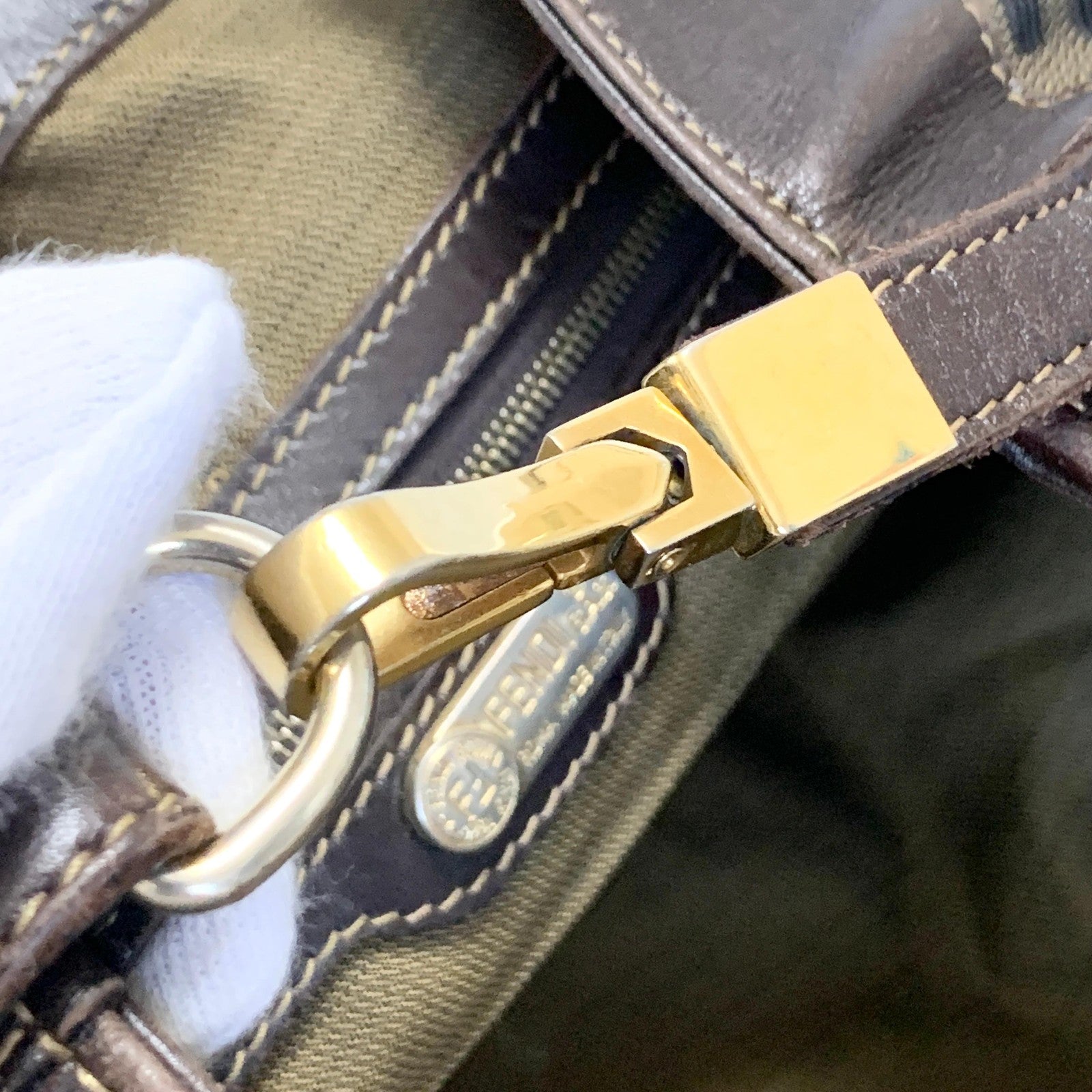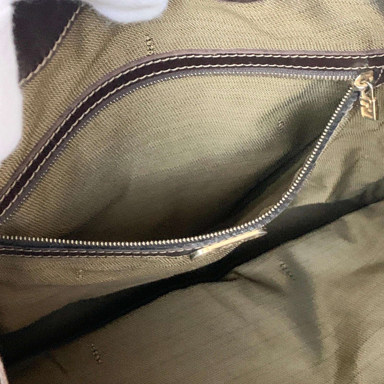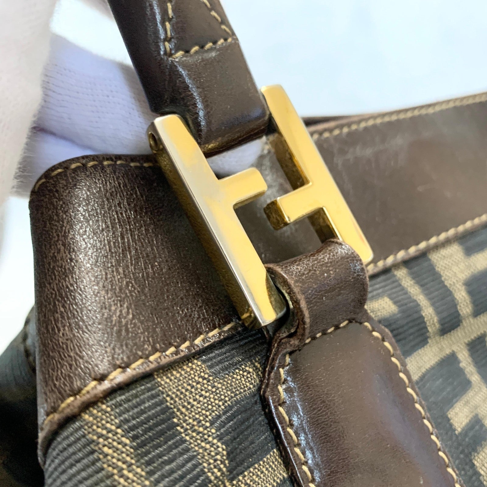 FENDI Zucca Handbag FF Shoulder Tote Purse Canvas Brown Gold Used Auth Unisex