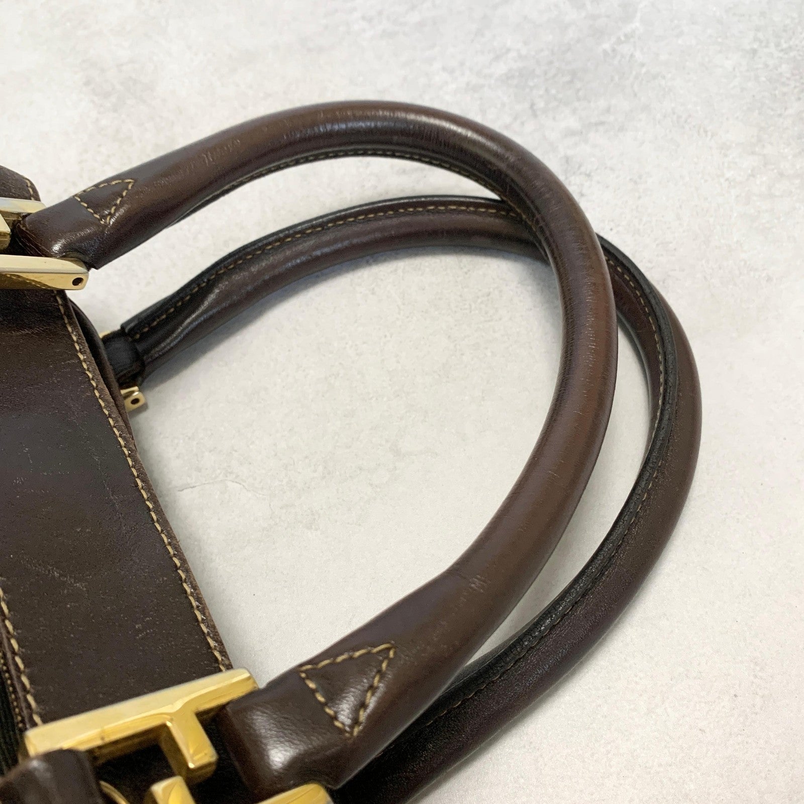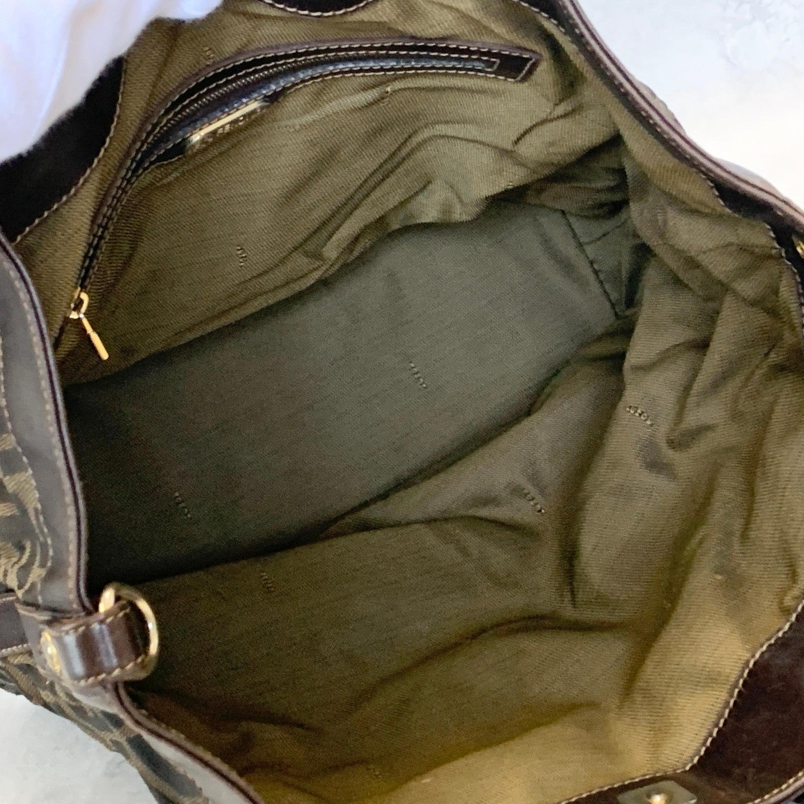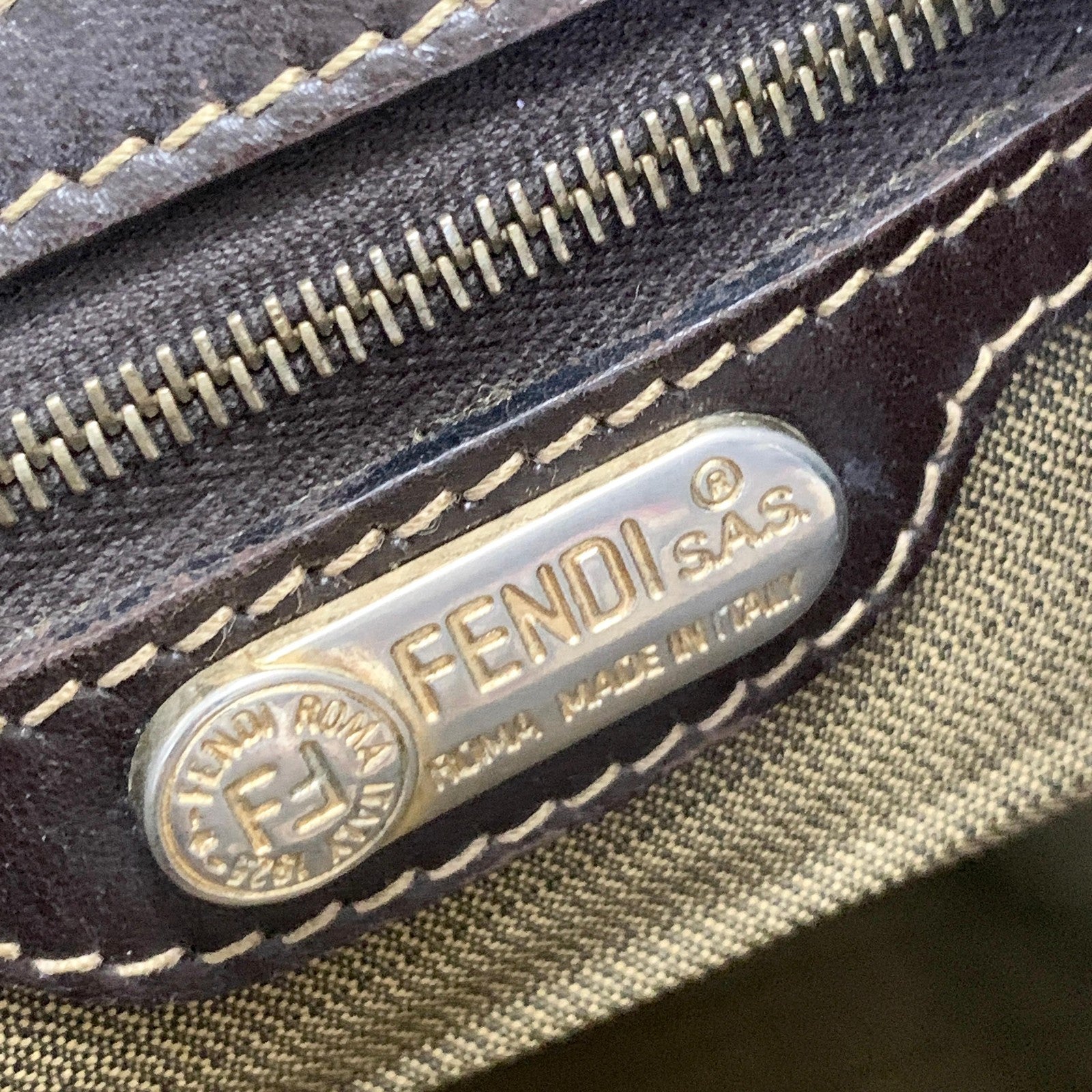 FENDI Zucca Handbag FF Shoulder Tote Purse Canvas Brown Gold Used Auth Unisex