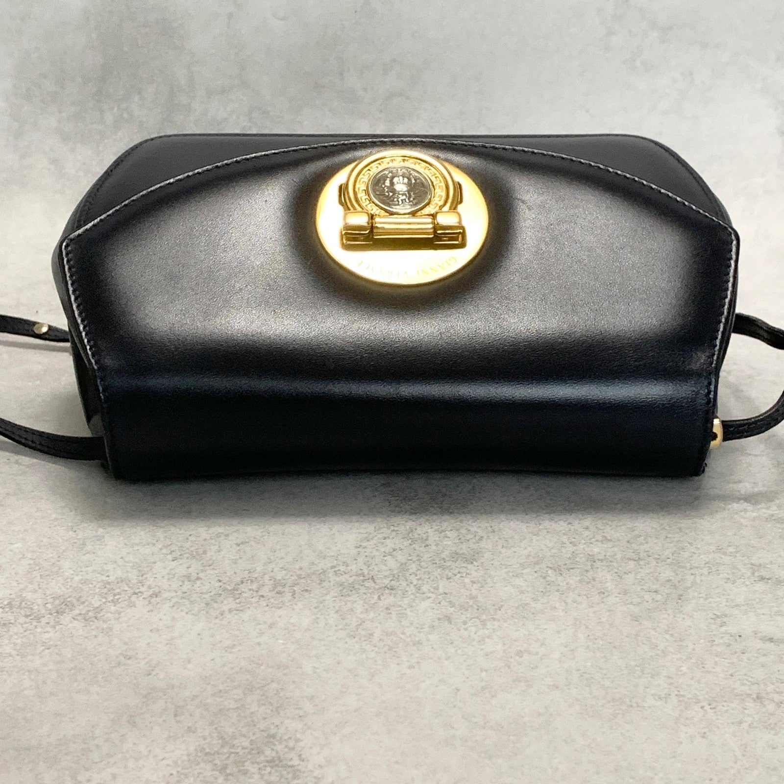 GIANNI VERSACE Medusa Shoulder Bag Purse Leather Dark Navy Women's Authentic